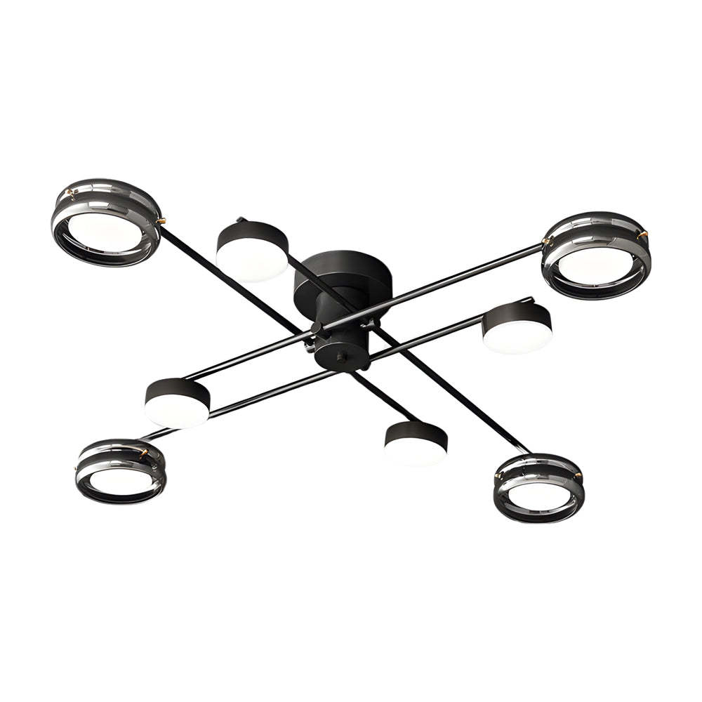 - Experience the fusion of simplicity and sophistication with our Modern Black Copper Multi-Head Minimalist Nordic Style Semi-Flush Mount Ceiling Lighting. This fixture features a striking combination of an all-copper lamp frame, matte black glass and black environmental material shades in triangular and cross configurations, each design accentuating a unique artistic charm.
