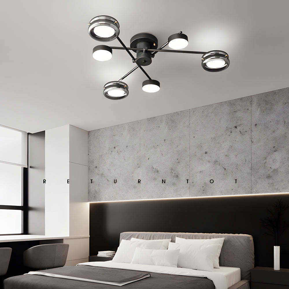 Artistic Multi-Head Matte Black Copper Semi-Flush Mount Ceiling Lighting