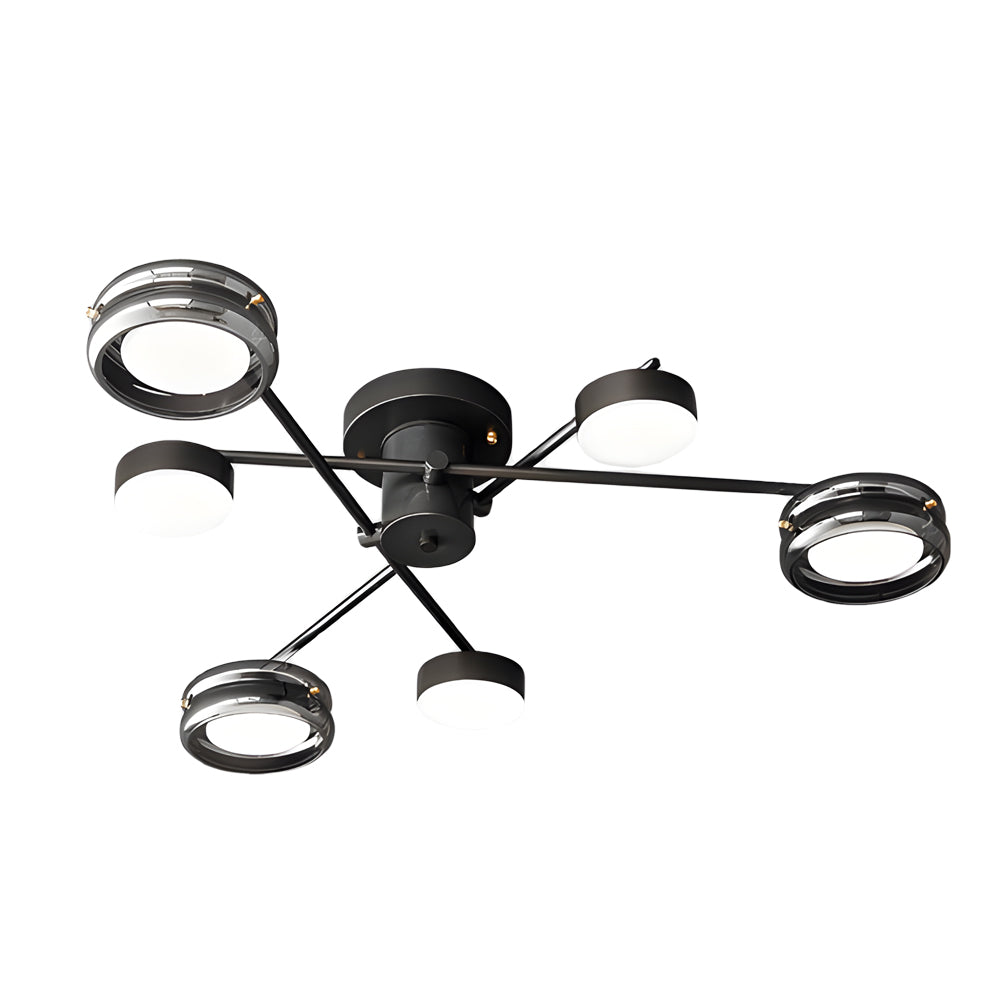 Artistic Multi-Head Matte Black Copper Semi-Flush Mount Ceiling Lighting