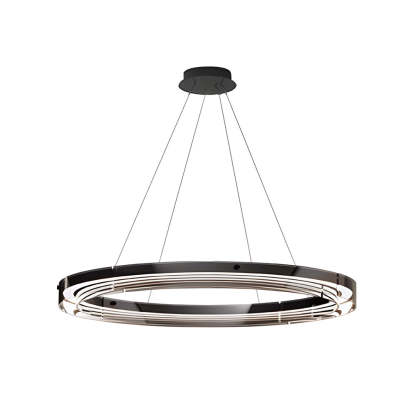 - An eye-catching modern profile joins a classic black finish to create a rich, exquisite appearance for this round LED ring pendant. This LED pendant chandelier adds energy-saving sophistication to any room. Looks great over a dining table, this pendant light features a black aluminum ring, suspended from its ceiling plate, surrounded by an electroplated glass shade. A sleek black finish is the ideal classic accent for this lovely LED pendant light.