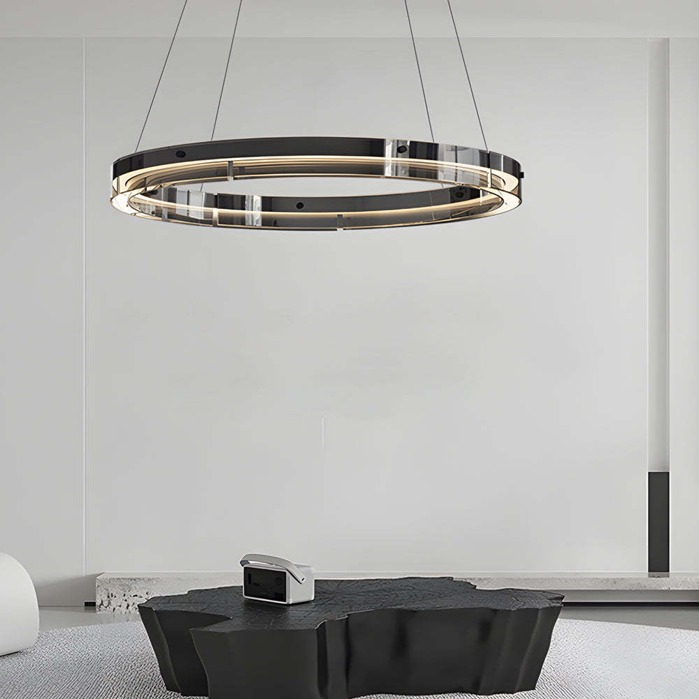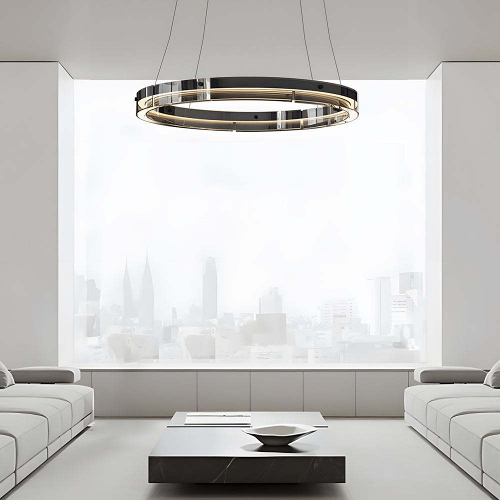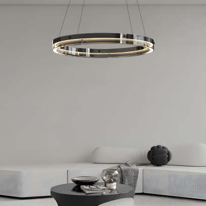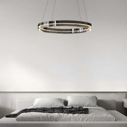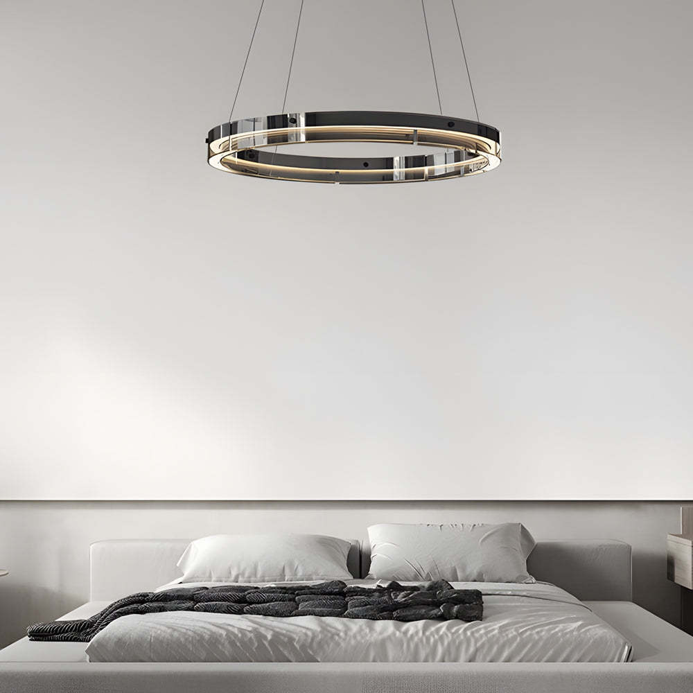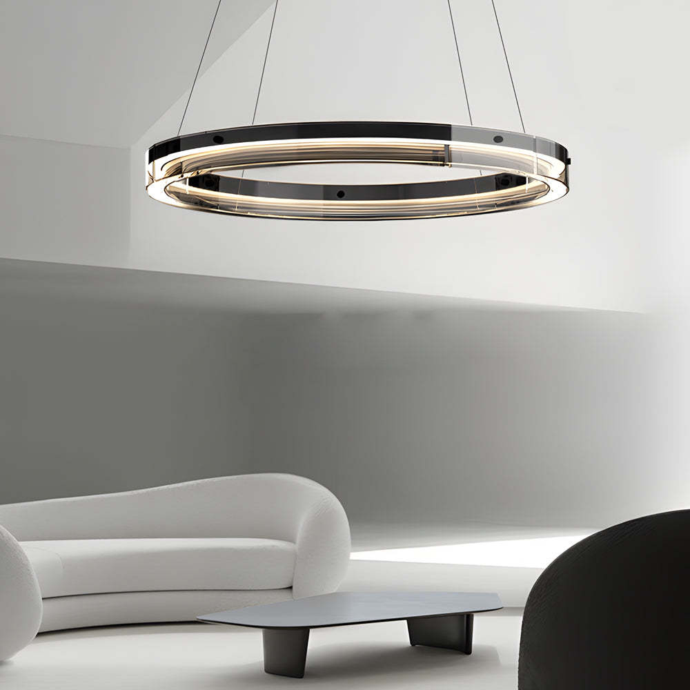 Black Glass Dimmable LED Ring Pendant Chandelier