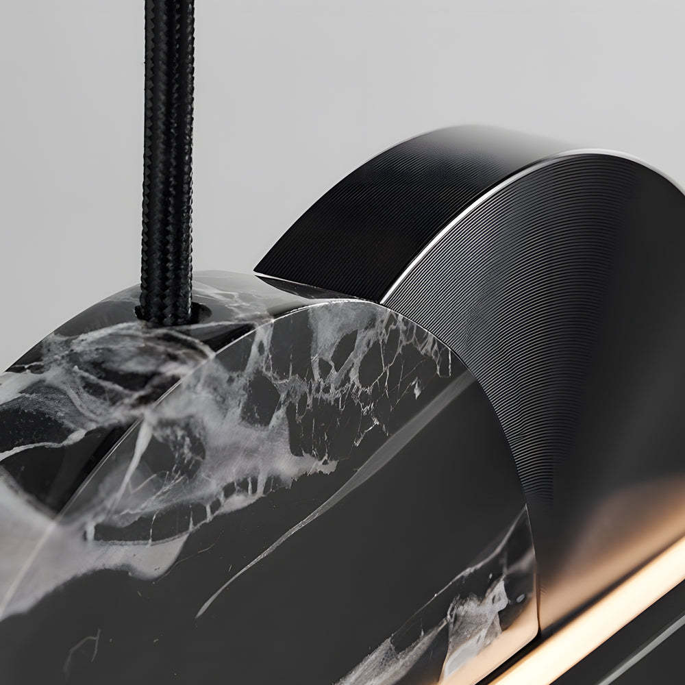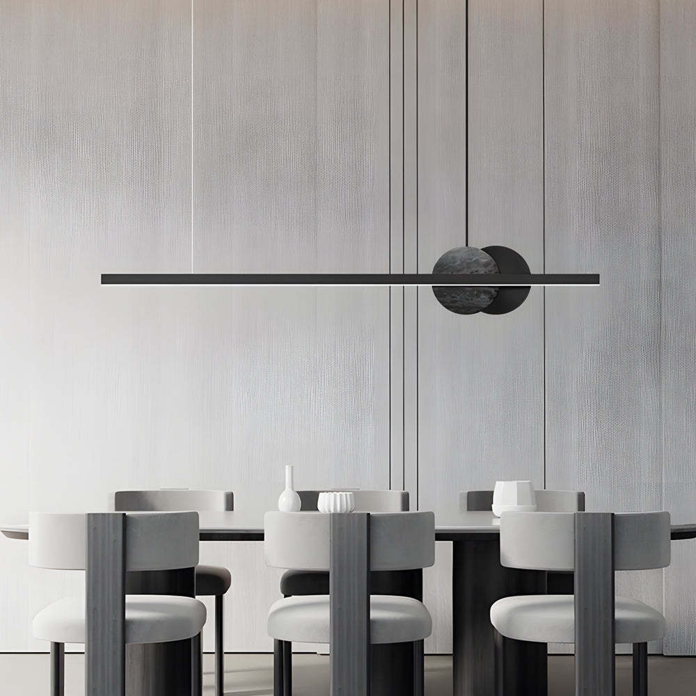 - Highlight and improve any dining decor or kitchen island with the addition of this energy-saving LED linear pendant that features a minimal profile and round marble accents.