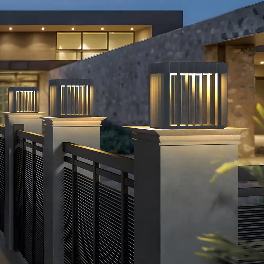 - This square outdoor post light features a square stainless steel build with a black finish. Its clean lines and hollow design add a playful touch to your garden and patio. creating a warm ambiance even at night. This versatile square outdoor column light offers both hardwired and solar power options. allowing for flexible installation and energy use to suit your needs. With an IP65 waterproof rating. it ensures reliable performance in all weather conditions. making it perfect for illuminating pathways. garden areas. and parks. while enhancing the beauty and safety of outdoor environments.