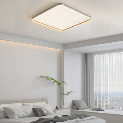 - Transform your dining room or bedroom with the sleek and simple geometric flat flush mount ceiling light. With its modern square, rectangular, and round design, this LED lamp is both bright and eye-catching to add a tidy and clear mood. Its dimmable feature, controlled by a remote, allows you to easily set the perfect lighting for any occasion. Enjoy the beauty and lighting this light brings to your home.