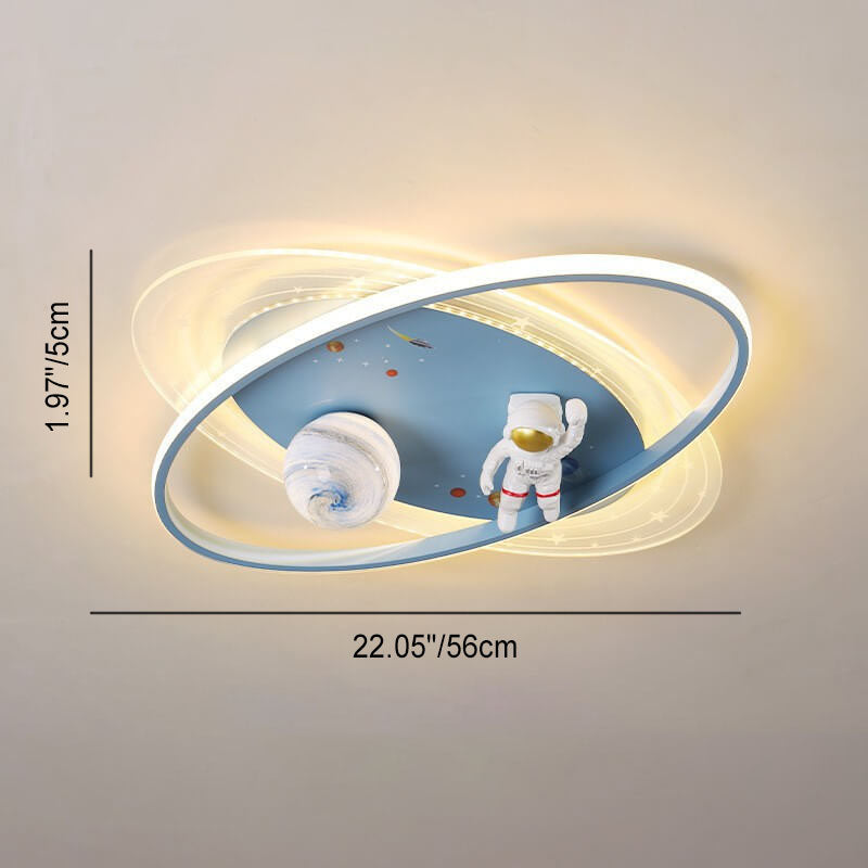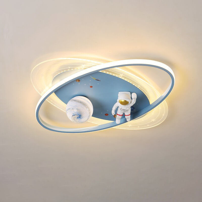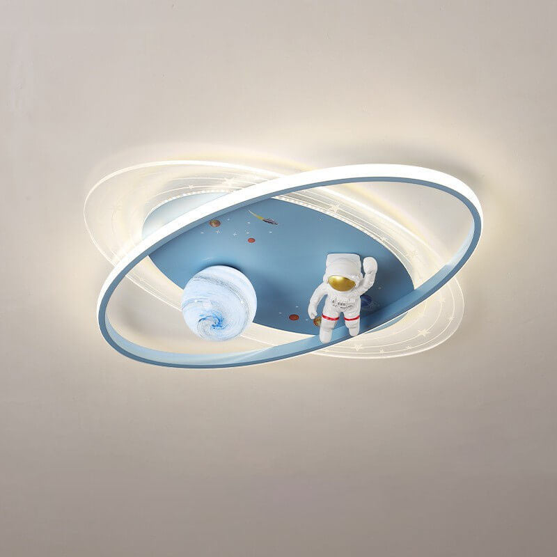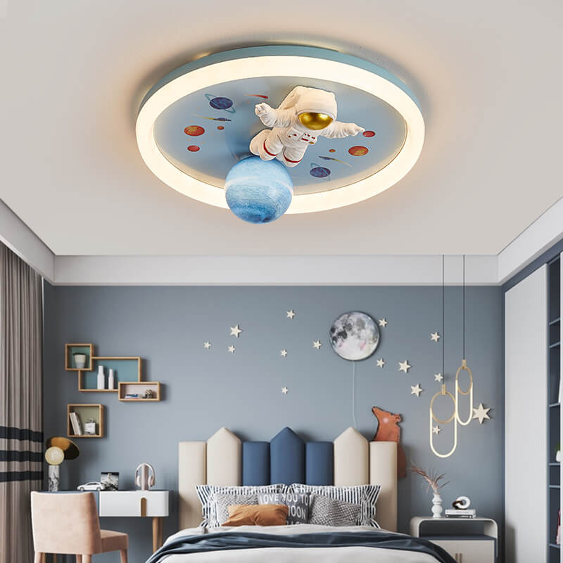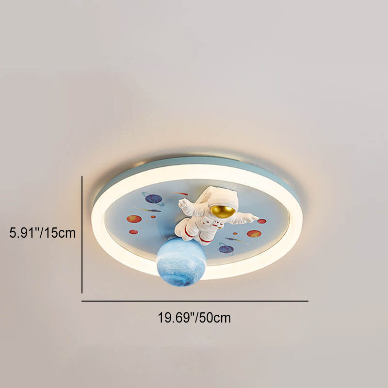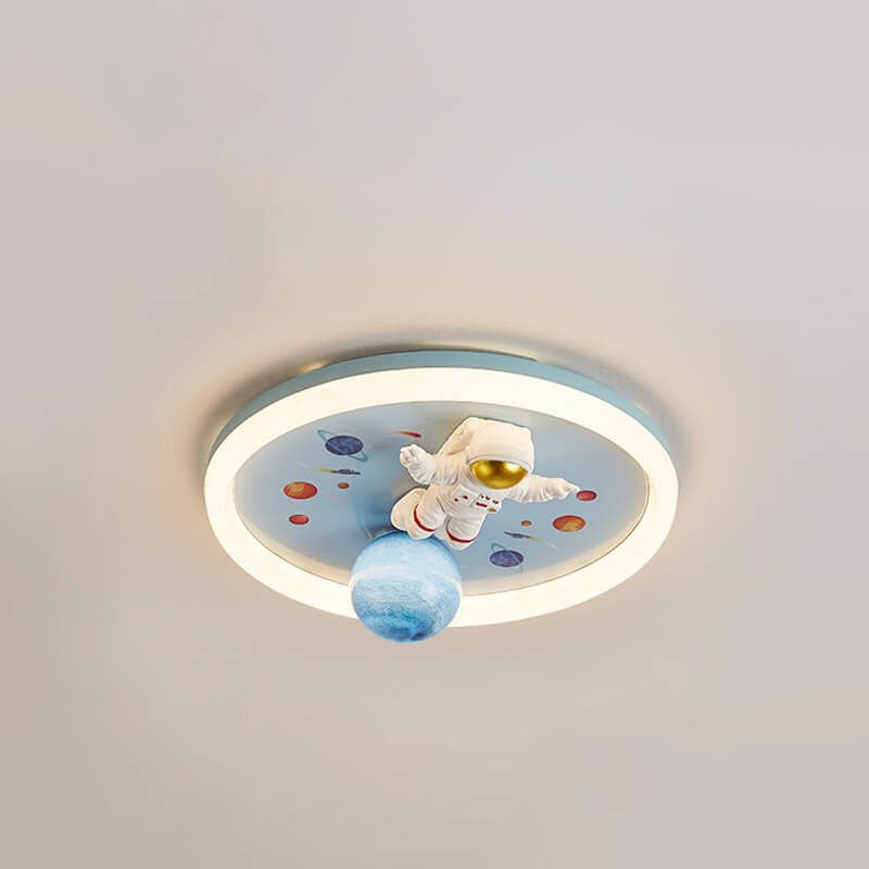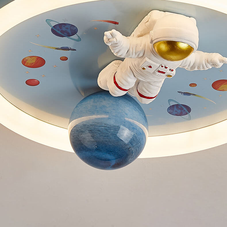 Childlike Cartoon Resin Astronaut Round Acrylic LED Flush Mount Ceiling Light