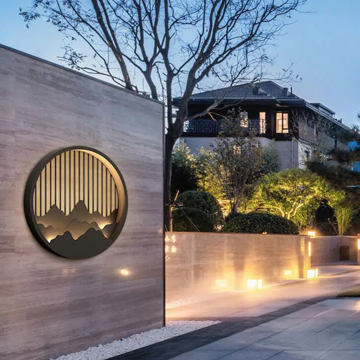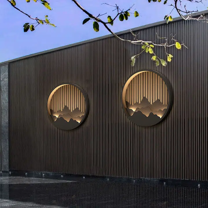 Chinese Modern Round Mountain Stainless Steel PC LED Waterproof Outdoor Wall Sconce Light