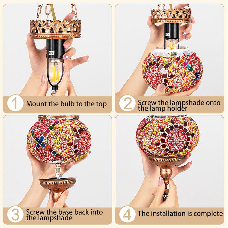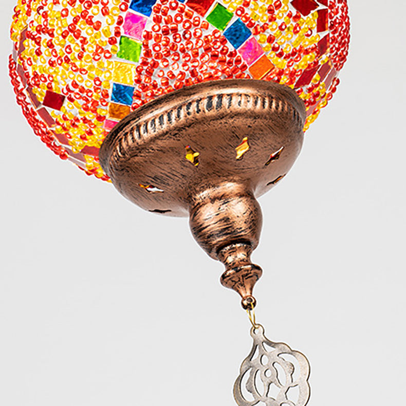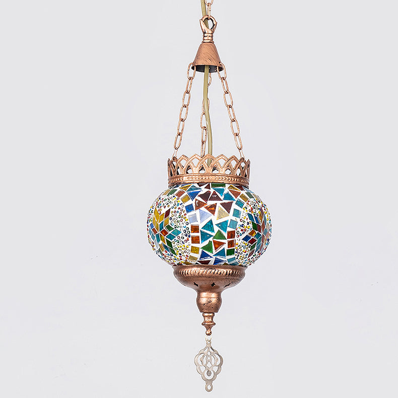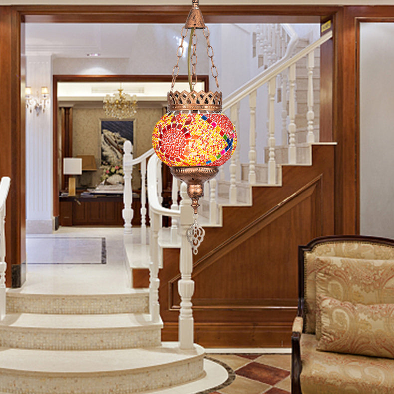 Contemporary Boho Iron Frame Stained Glass Ball Shade 1-Light Pendant Light For Living Room