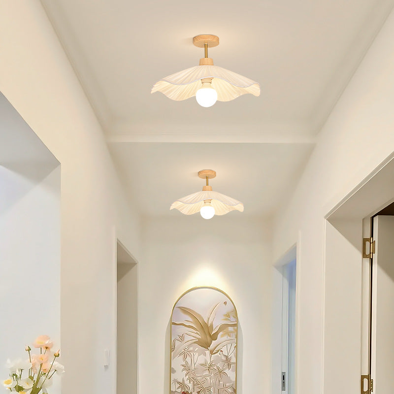 Contemporary Coastal Wave Wood Fabric 1-Light Semi-Flush Mount Ceiling Light For Living Room