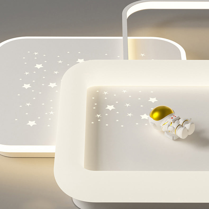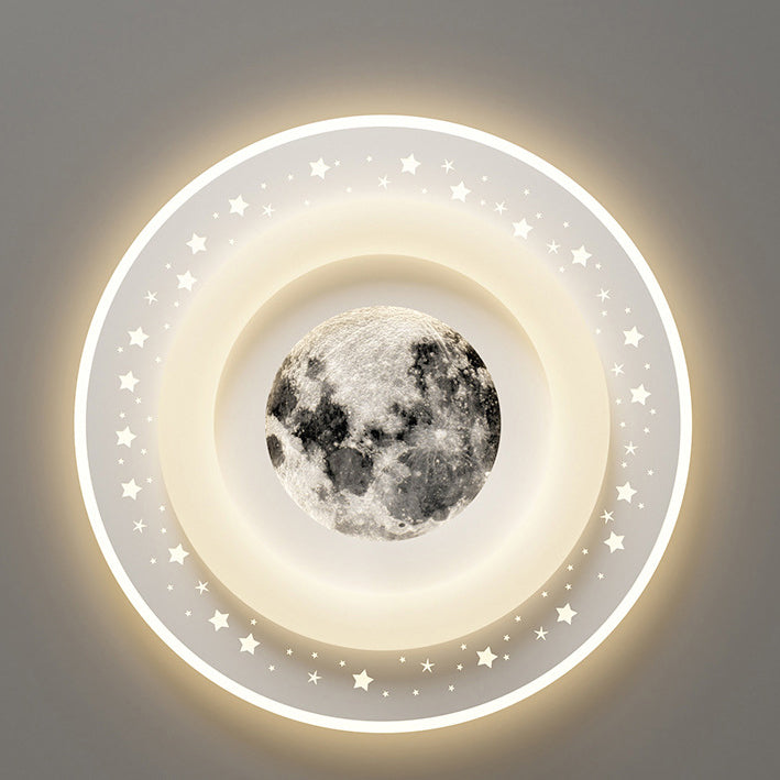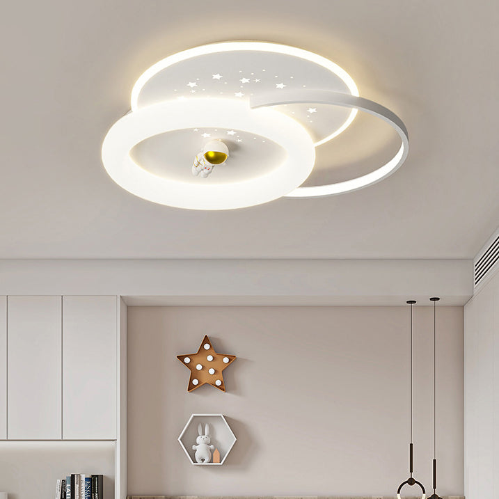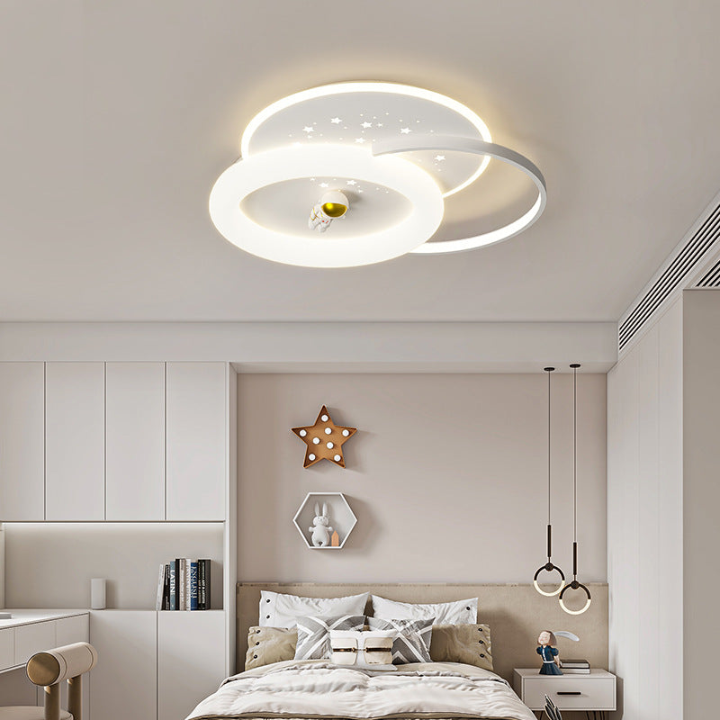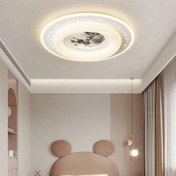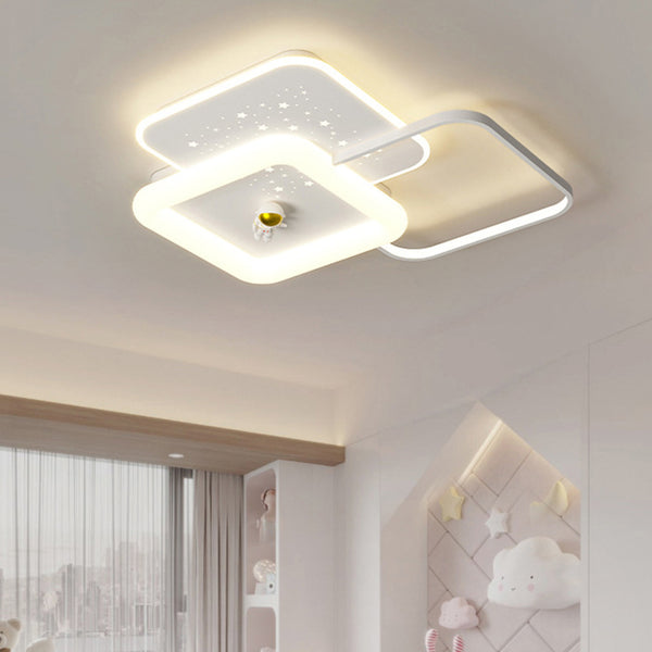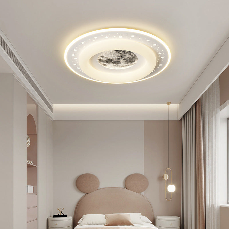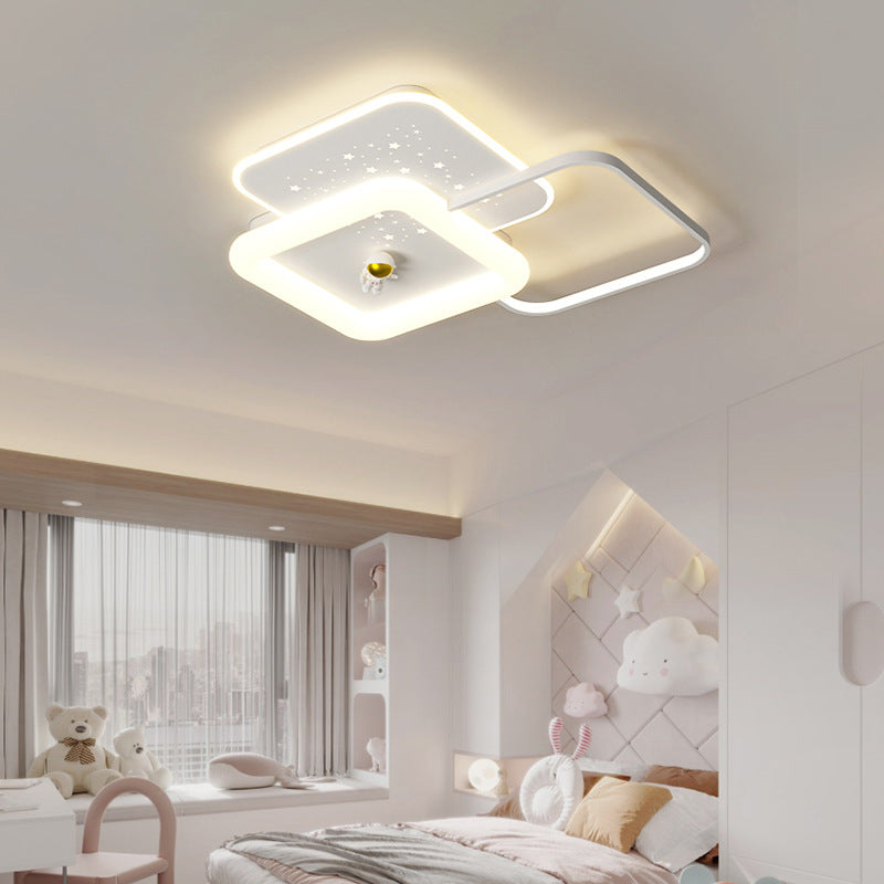 Contemporary Creative Acrylic Aluminum Iron Square Round Planet LED Flush Mount Ceiling Light For Bedroom