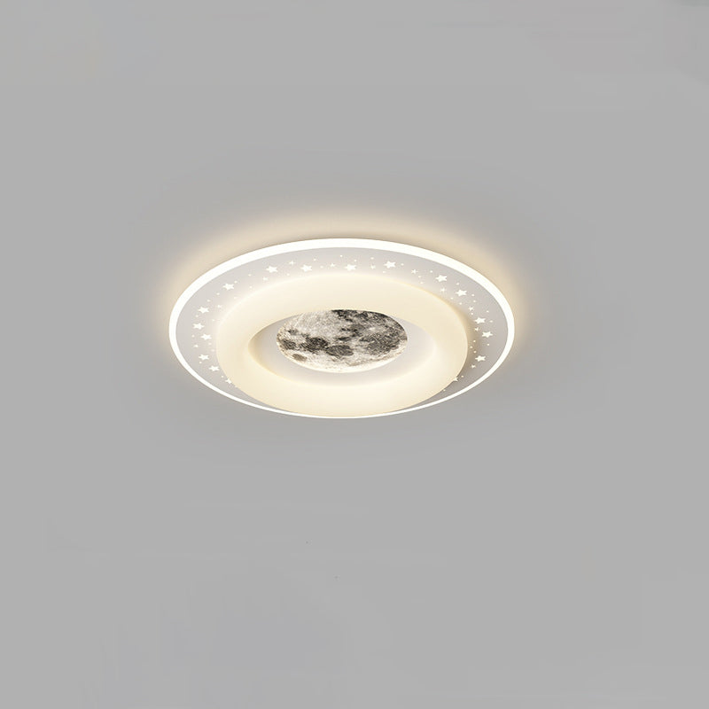Illuminate your bedroom with this contemporary flush mount ceiling light. crafted from acrylic. aluminum. and iron in a playful square-round-planet design. Featuring high color rendering and soft. evenly diffused lighting. it provides a comfortable and eye-friendly glow in white and black tones??perfect for a modern. dreamy space-themed interior.