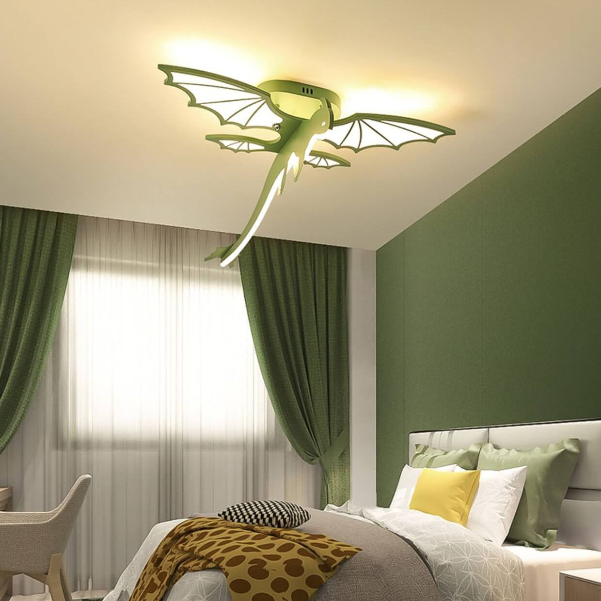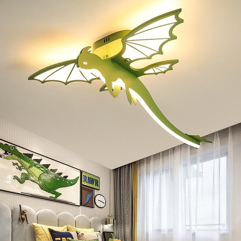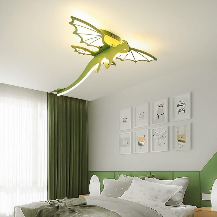Contemporary Creative Acrylic Cartoon Dinosaur LED Semi-Flush Mount Ceiling Light For Bedroom