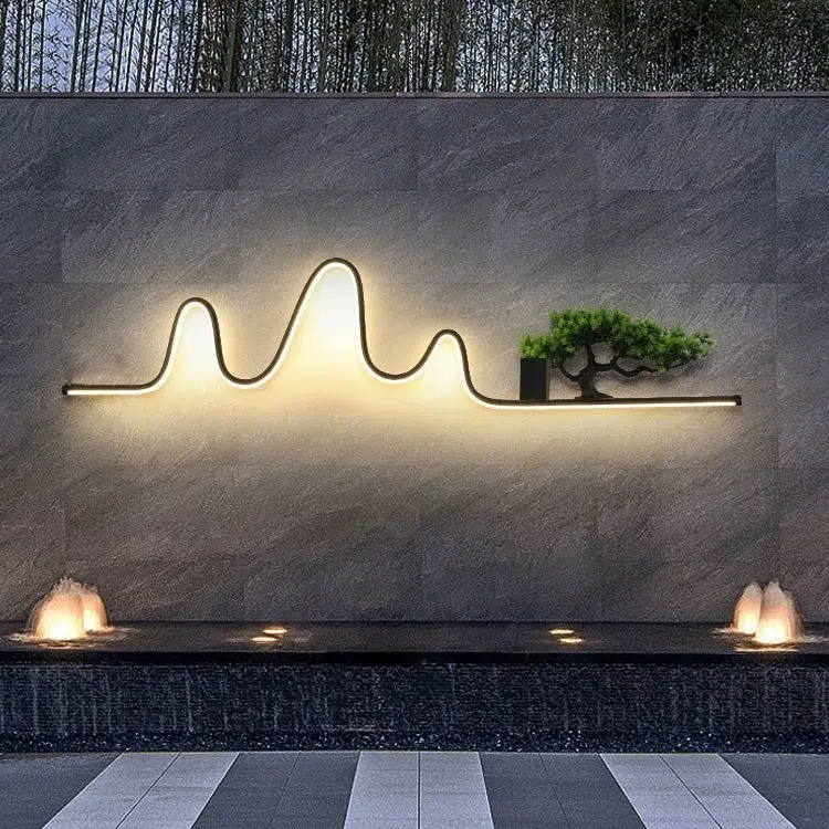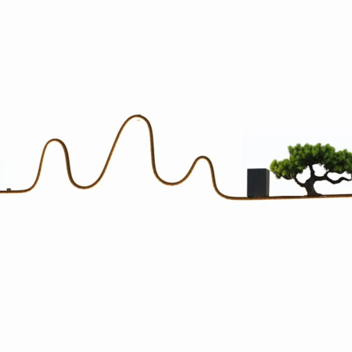 Contemporary Creative Aluminum Arc Linear PVC Simulated Pine Wood LED Waterproof Outdoor Wall Sconce Lamp For Garden