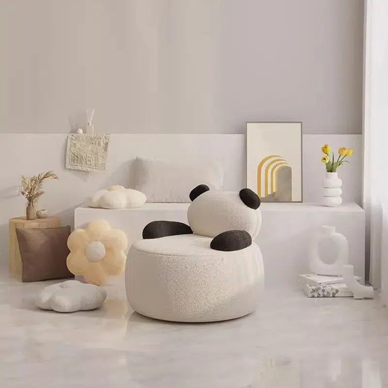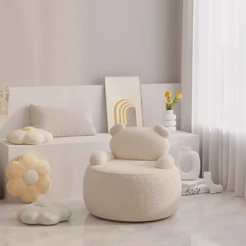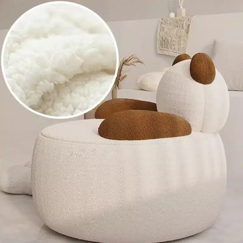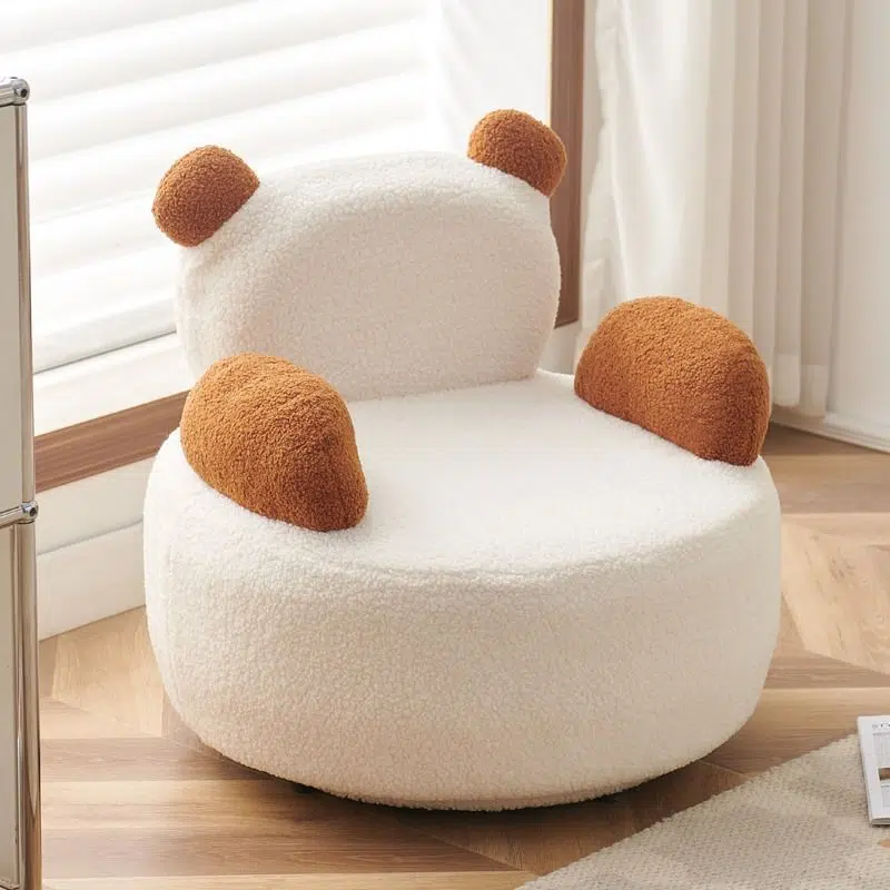 Contemporary Creative Bear Round Cushion Lambswool Solid Wood Accent Chair Backrest Armrest For Living Room