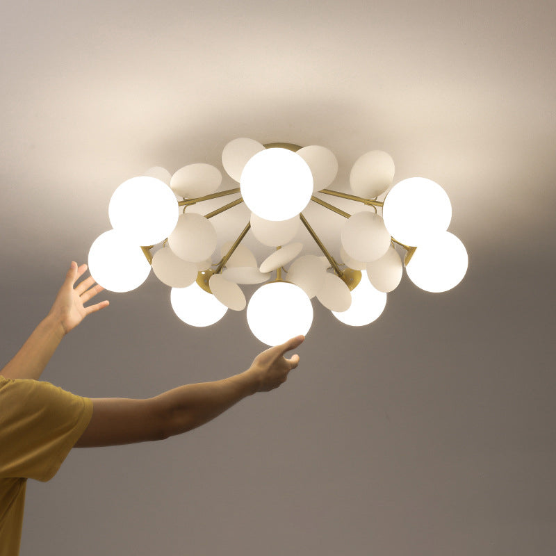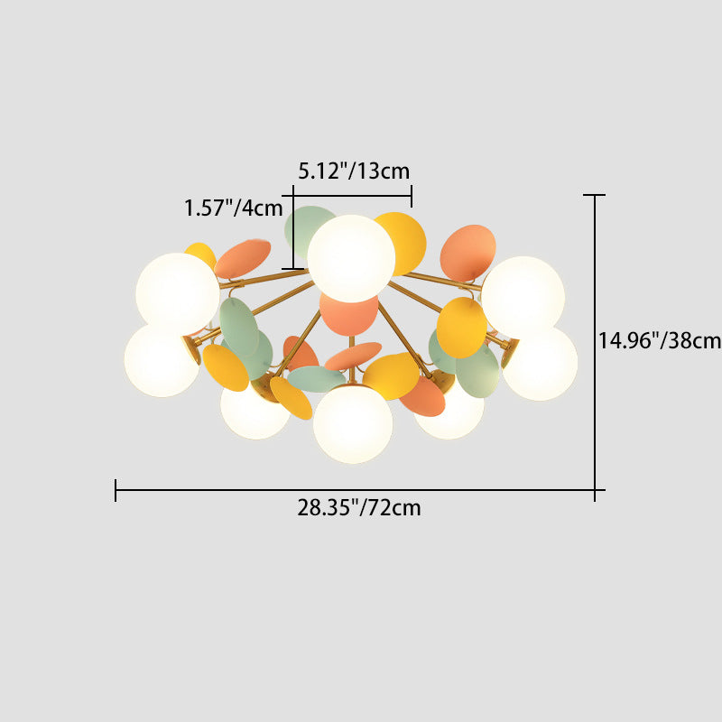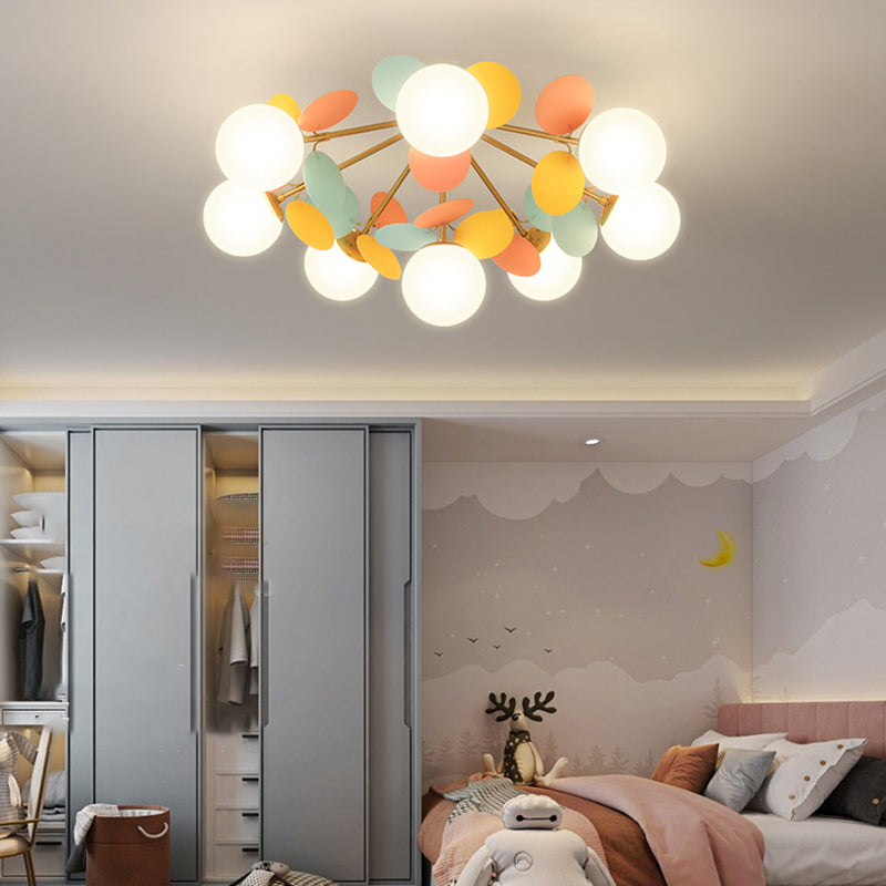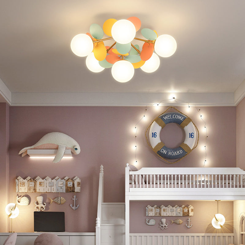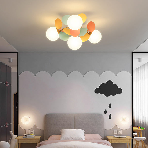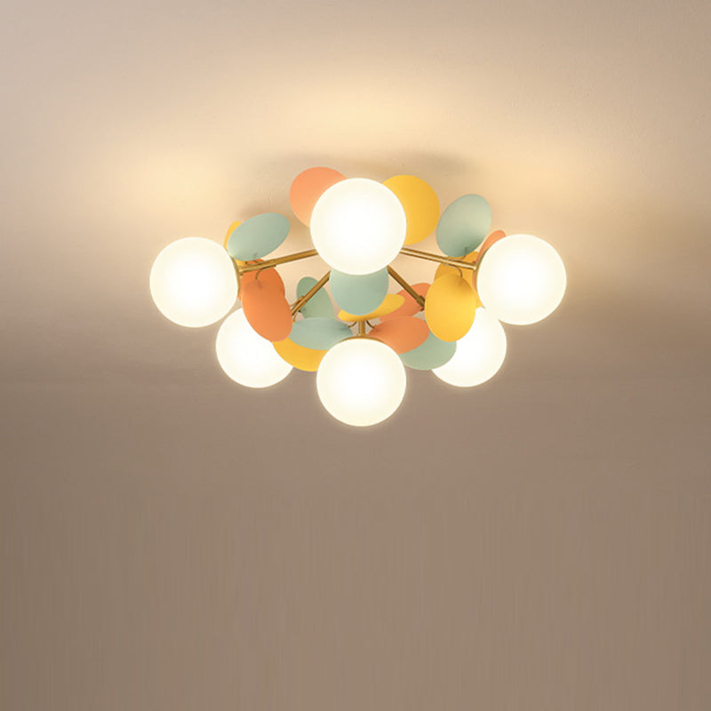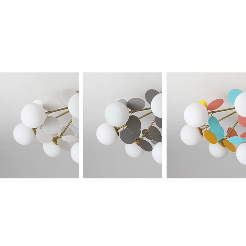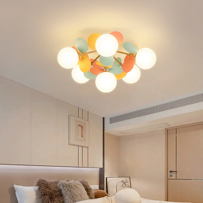 Contemporary Creative Branch Globe Round Piece Metal Glass Acrylic 4/6/8 Light Flush Mount Ceiling Light For Bedroom