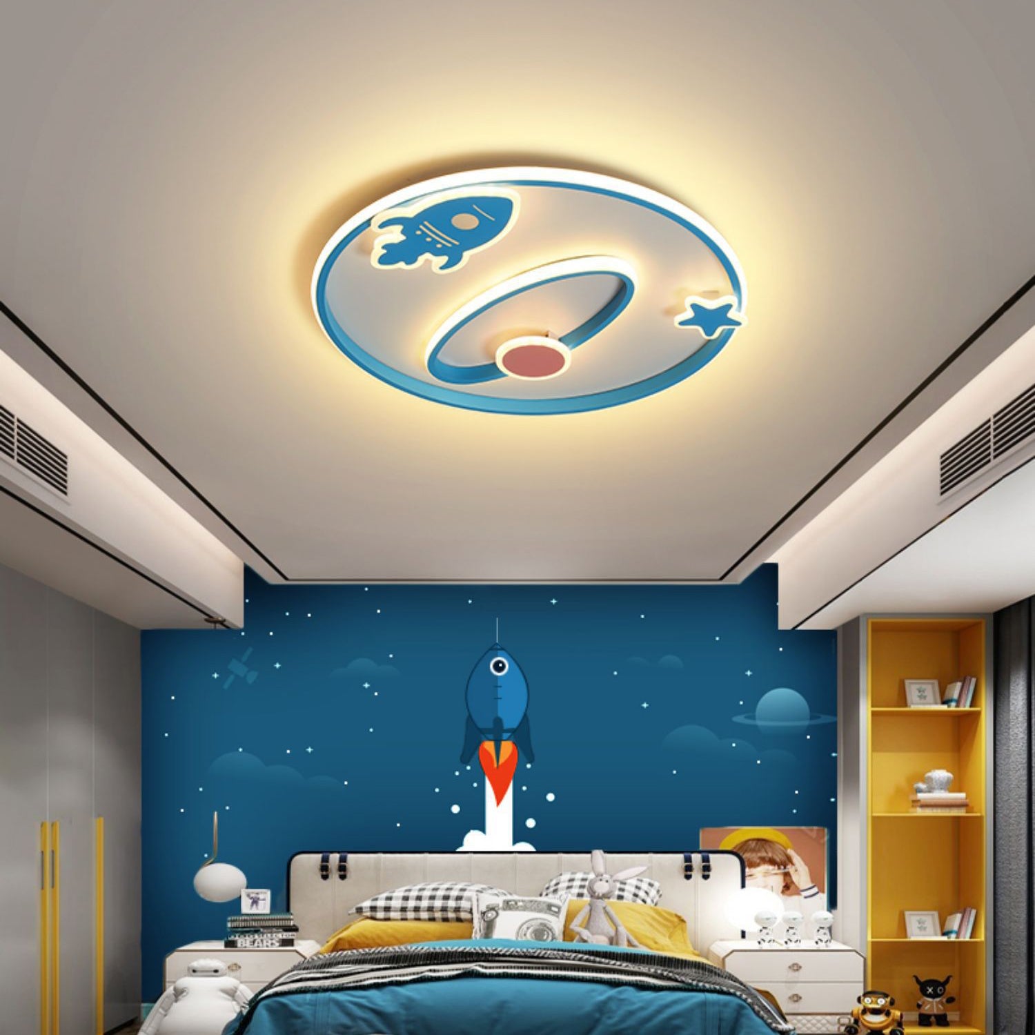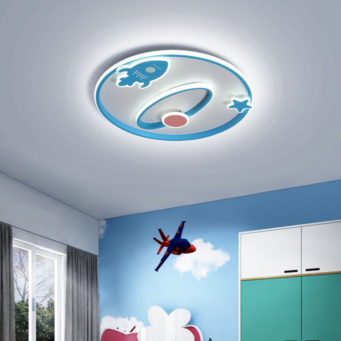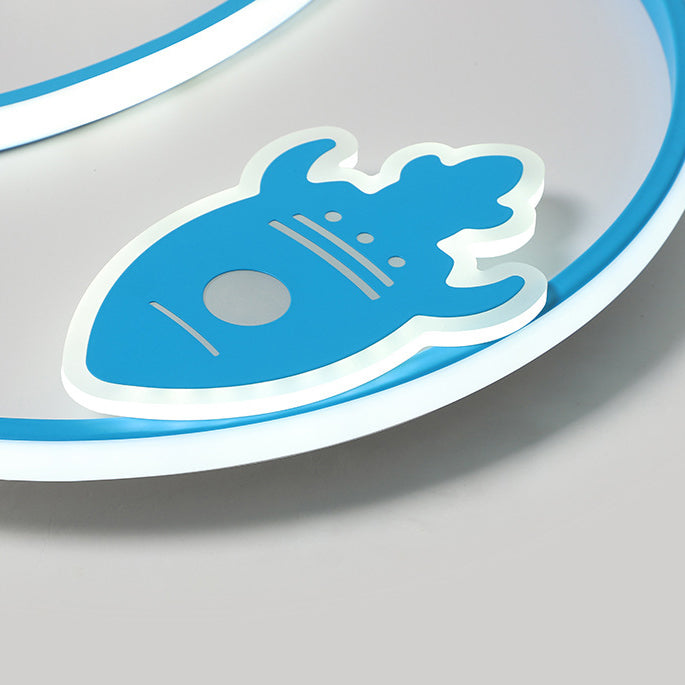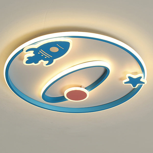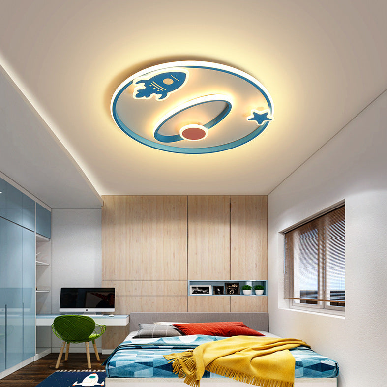 Contemporary Creative Cartoon Space Rocket Iron Acrylic LED Flush Mount Ceiling Light For Bedroom