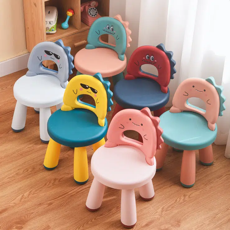 Contemporary Creative Childlike Dinosaur Plastic Round Footstool Backrest For Living Room