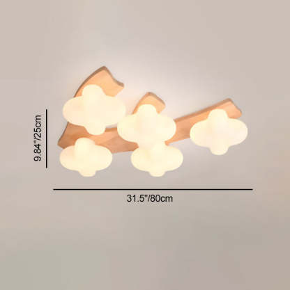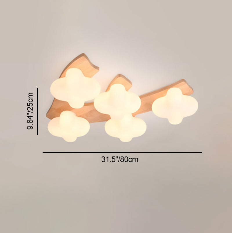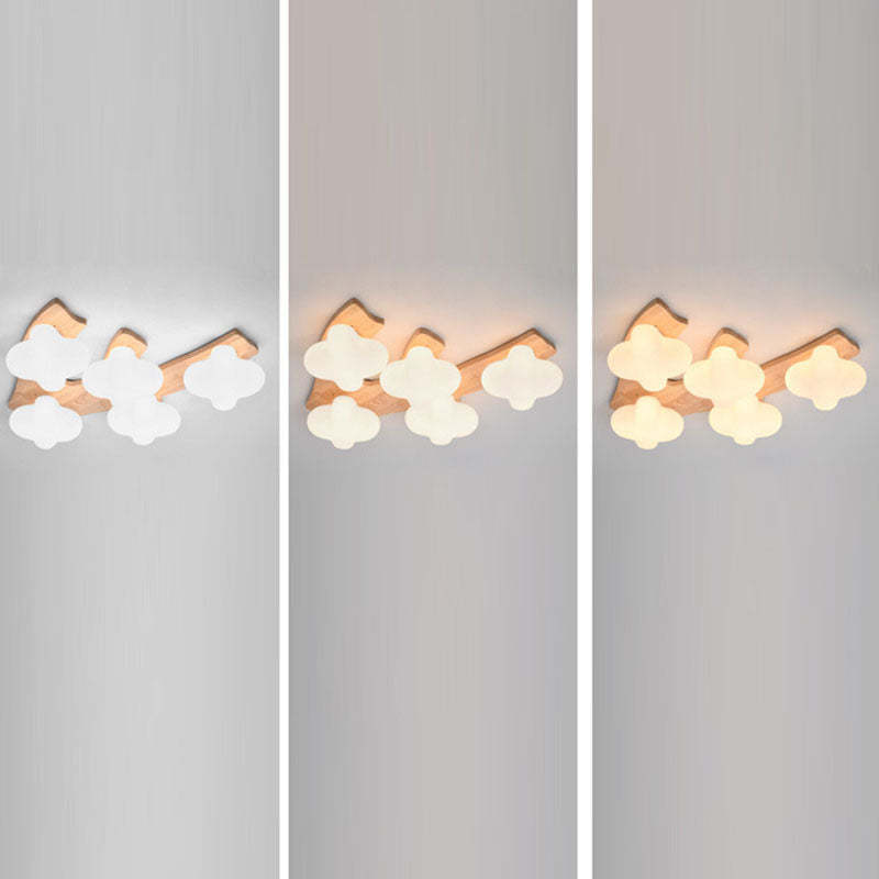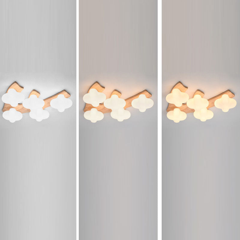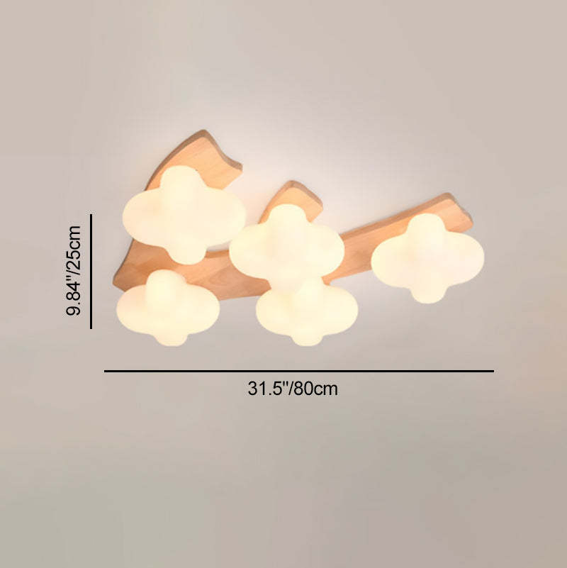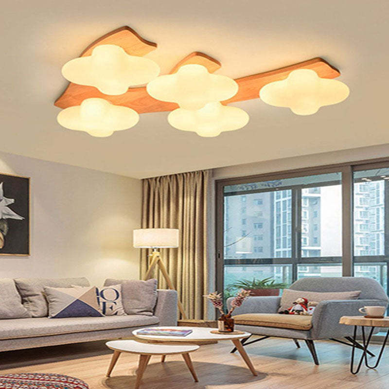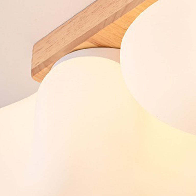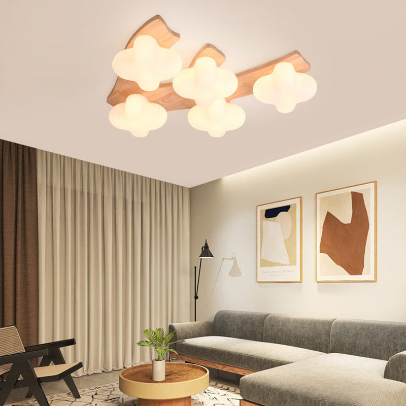 Contemporary Creative Cotton Solid Wood Glass LED Semi-Flush Mount Ceiling Light For Living Room