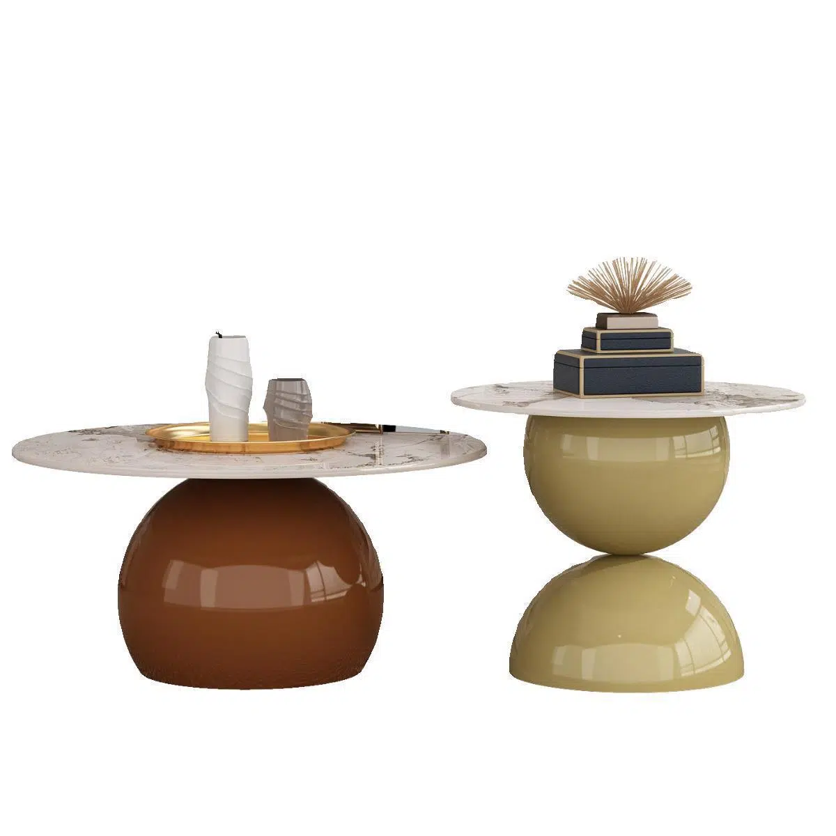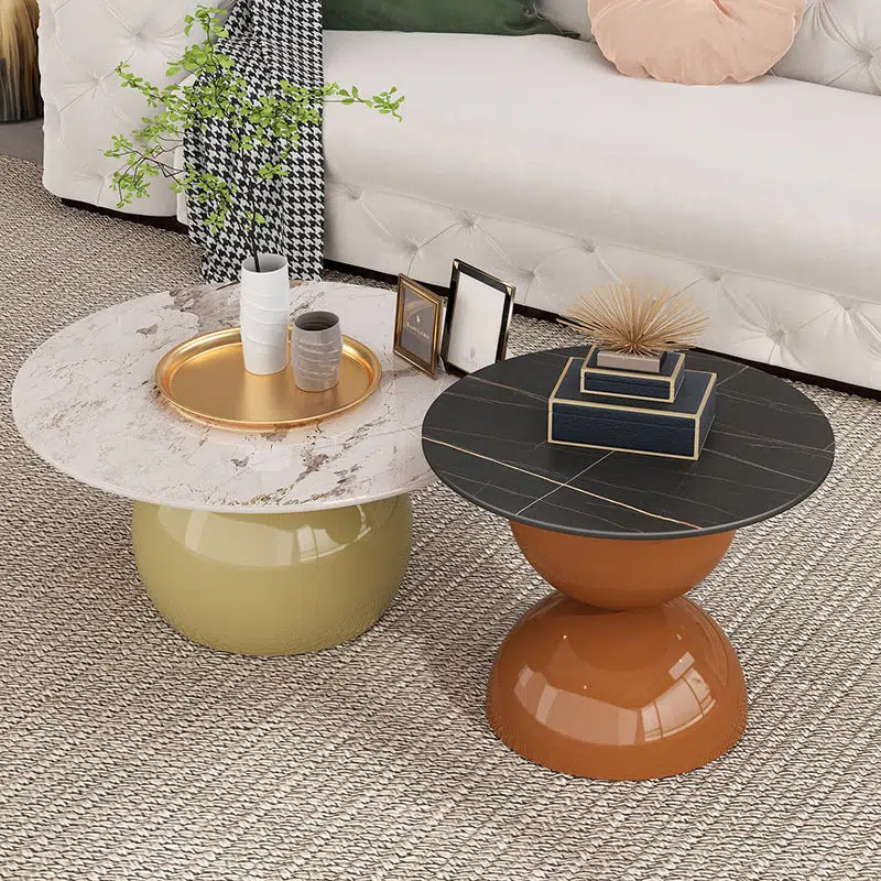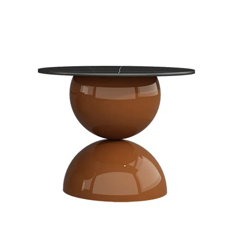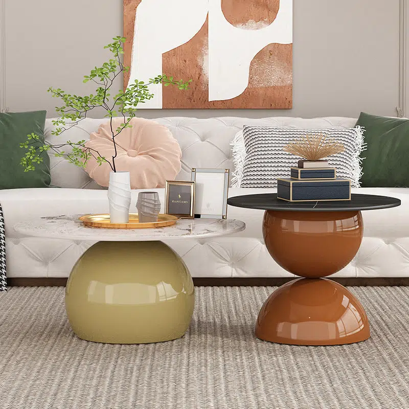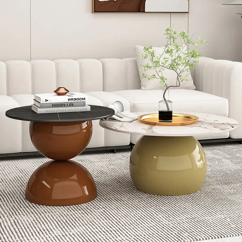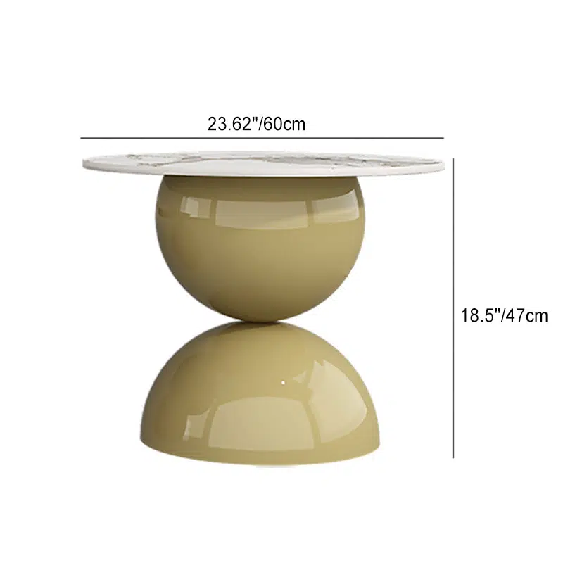 Contemporary Creative Cream Orb Round Half Round Rock Slab Metal End Table 1-Tier For Living Room