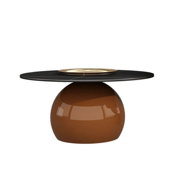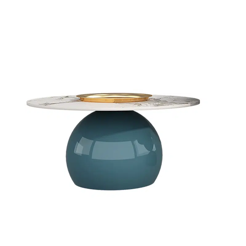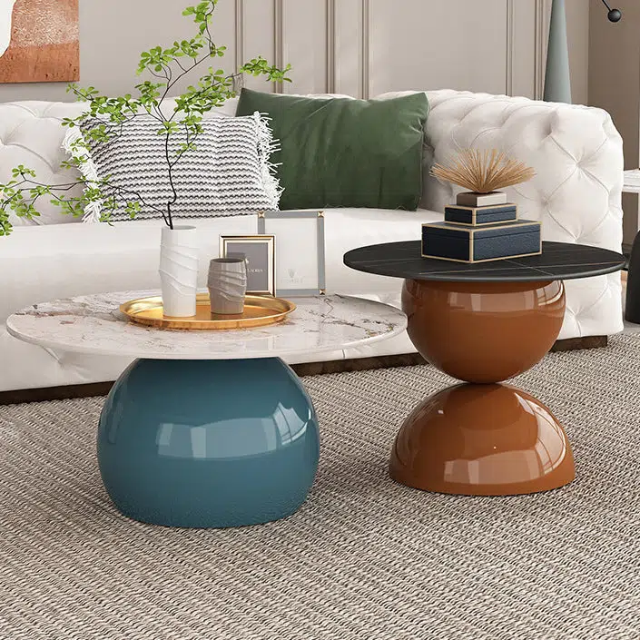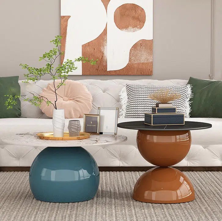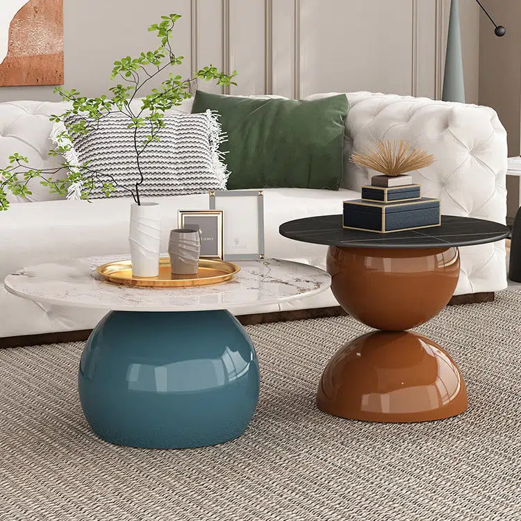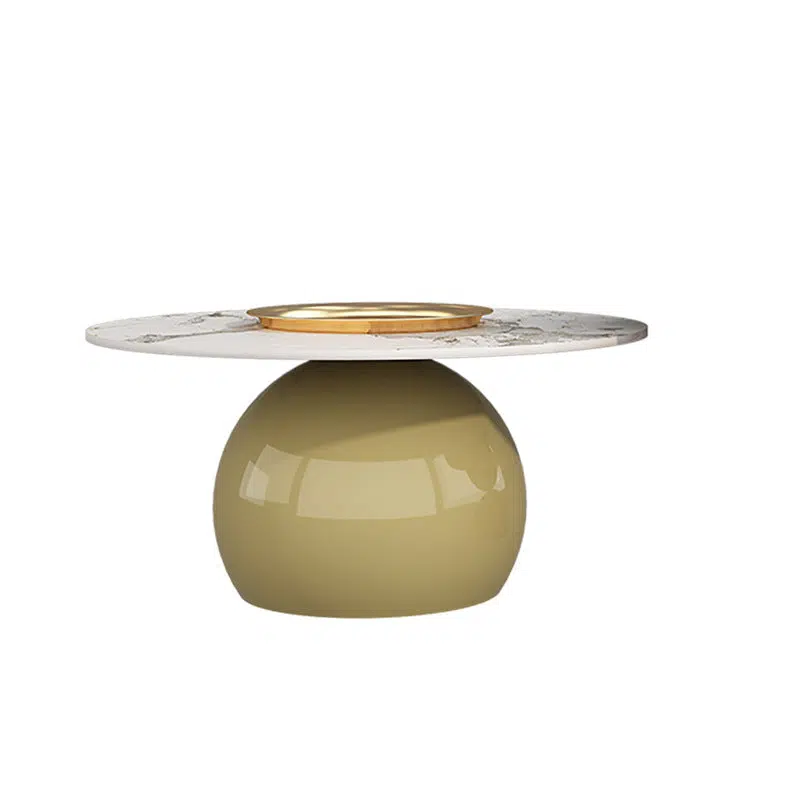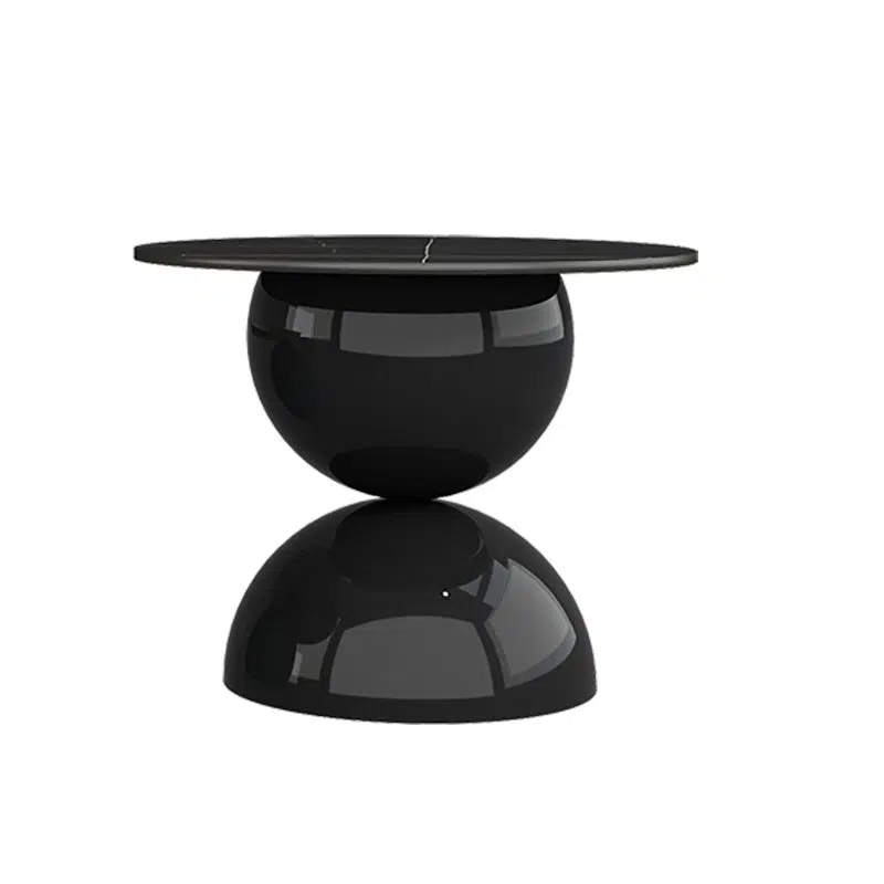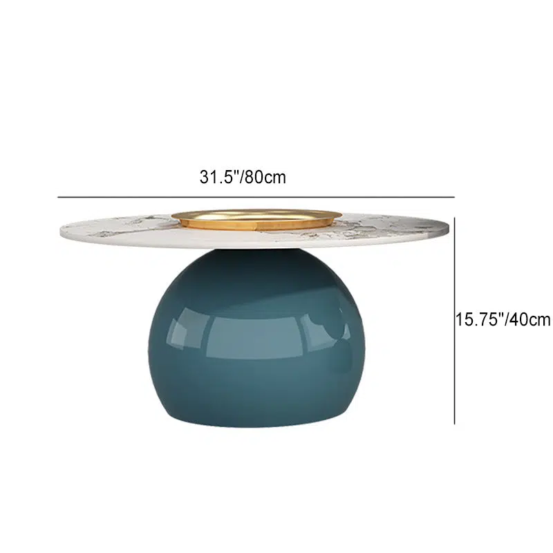 Contemporary Creative Cream Orb Round Half Round Rock Slab Metal End Table 1-Tier For Living Room
