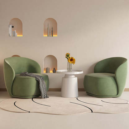 Contemporary Creative Curved Square Velvet Solid Wood Accent Chair Backrest For Living Room