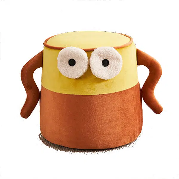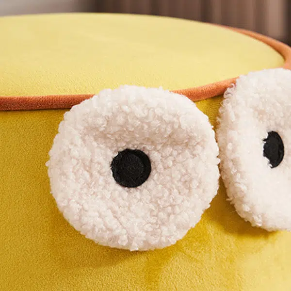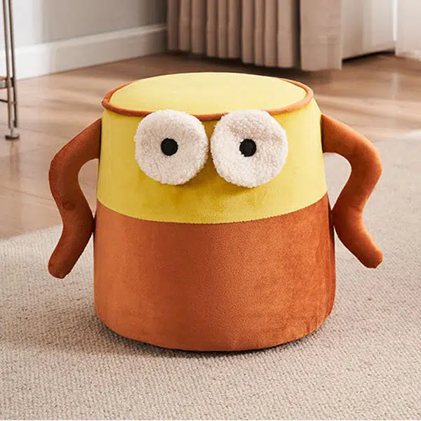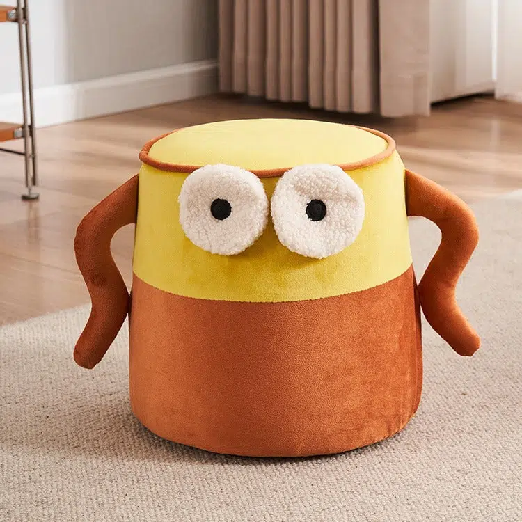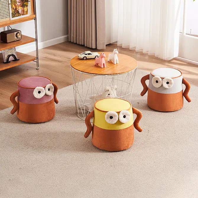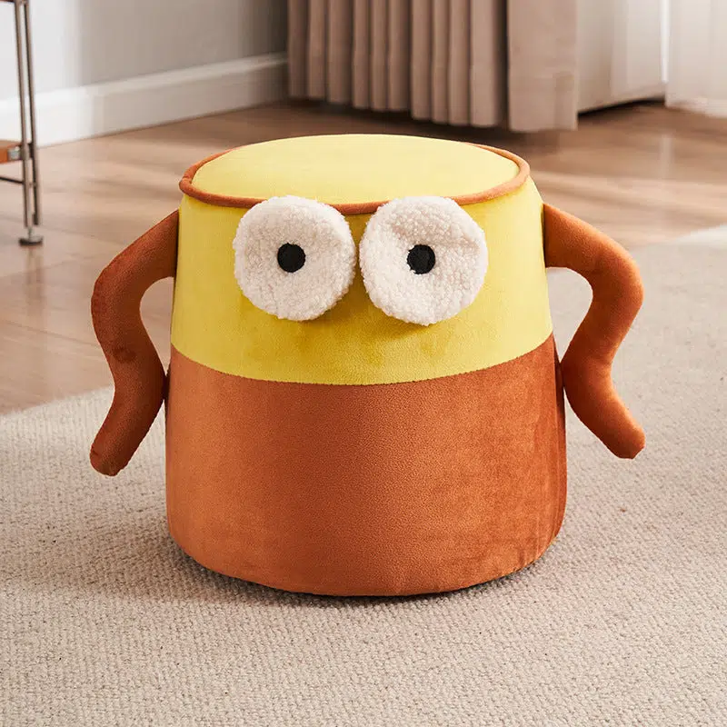 Contemporary Creative Cylinder Big Eyes Solid Wood Flannelette Footstool Backless Armless For Living Room