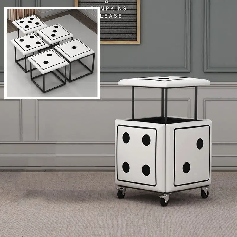 Contemporary Creative Dice Magic Cube 5-in-1 Stackable Combination Stool Low Stool Casters For Living Room
