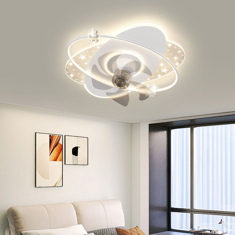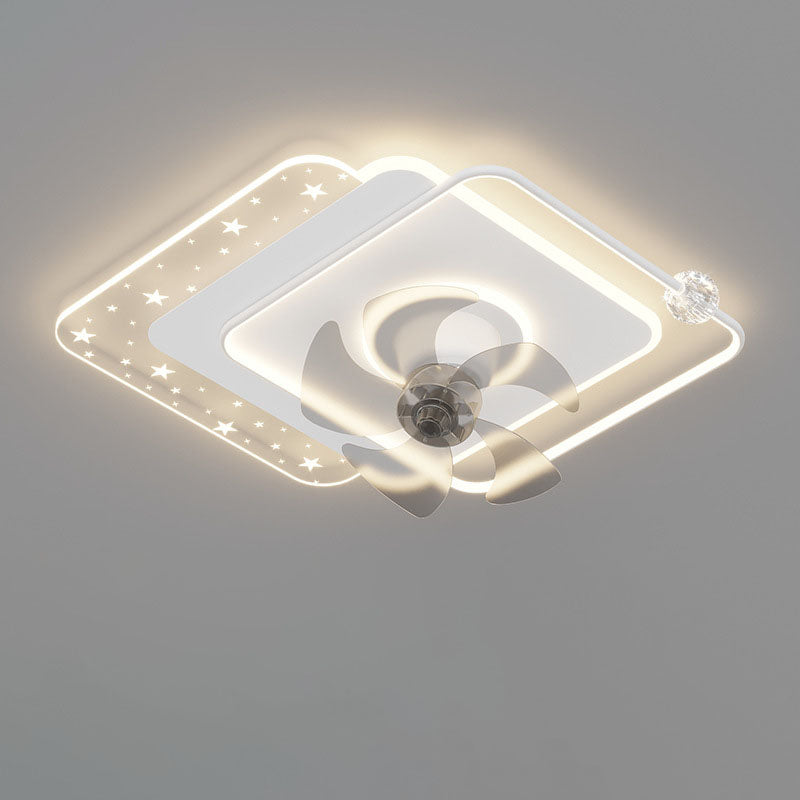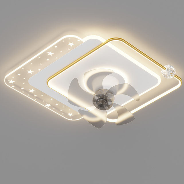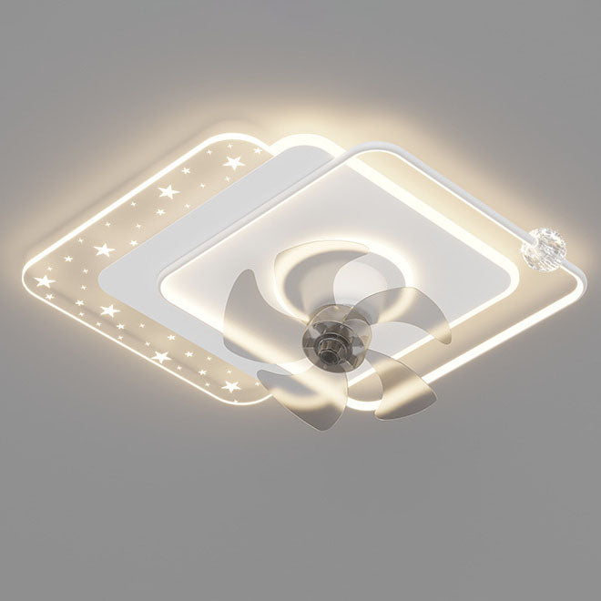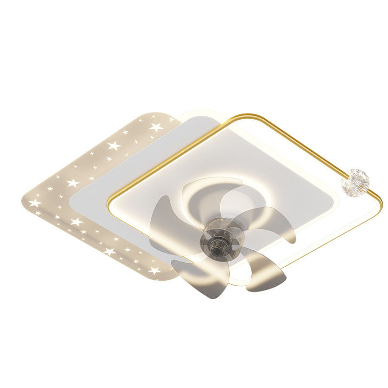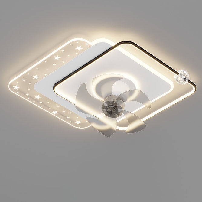 Contemporary Creative Iron Acrylic Round Square LED Semi-Flush Mount Ceiling Fan Light For Bedroom