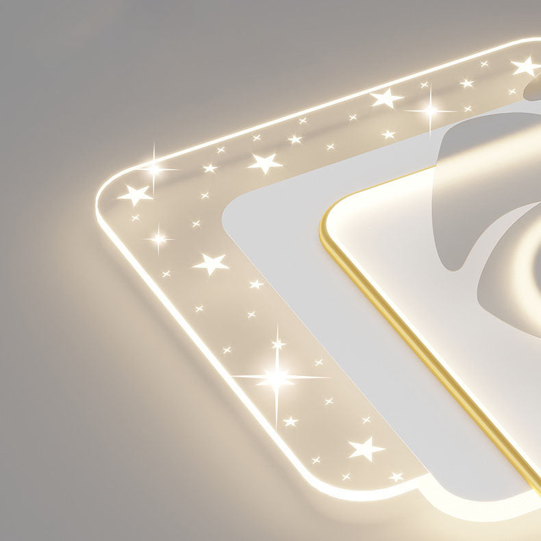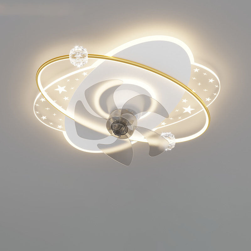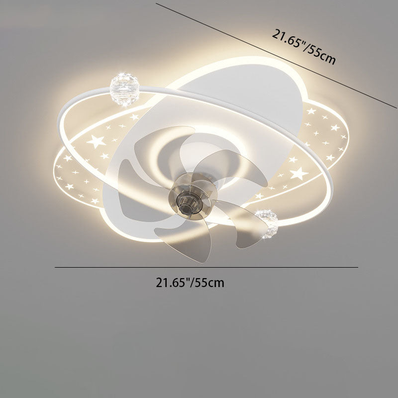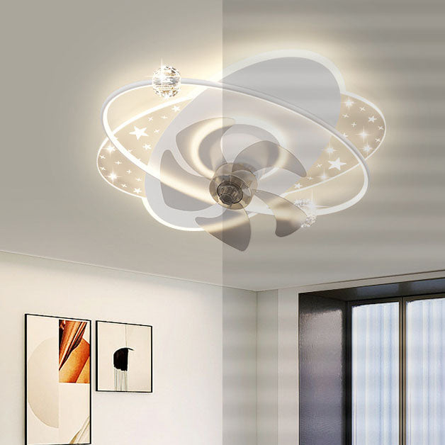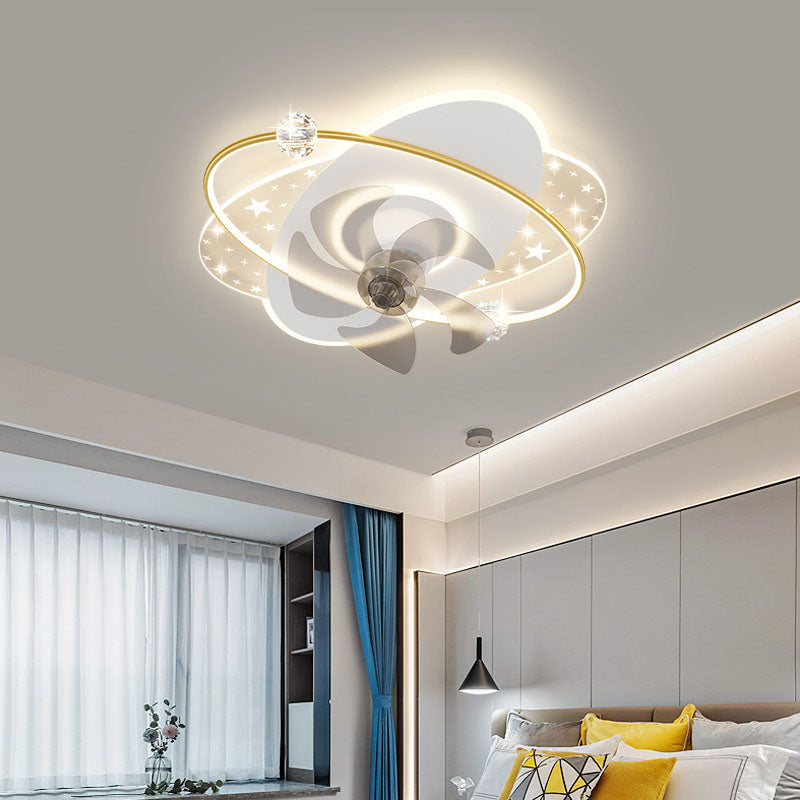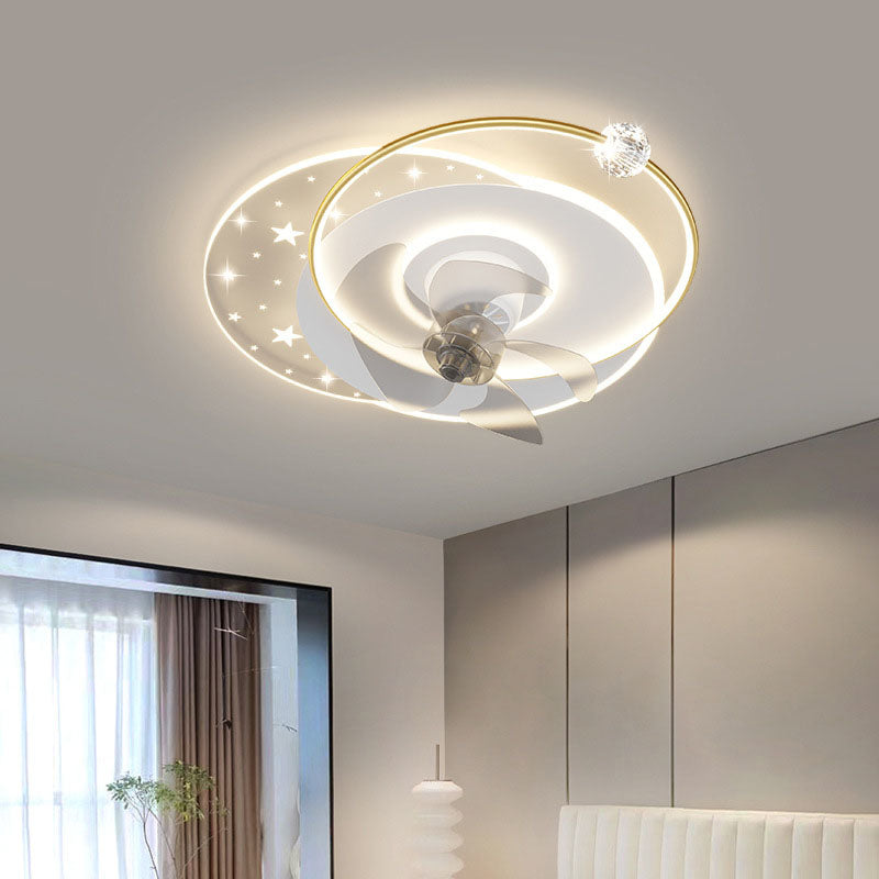 Contemporary Creative Iron Acrylic Round Square LED Semi-Flush Mount Ceiling Fan Light For Bedroom