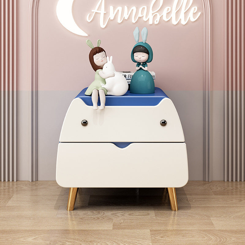 Contemporary Creative Kids Cartoon Cat Solid Wood Carbon Steel Microfiber Leather Nightstand 2-Drawer For Bedroom