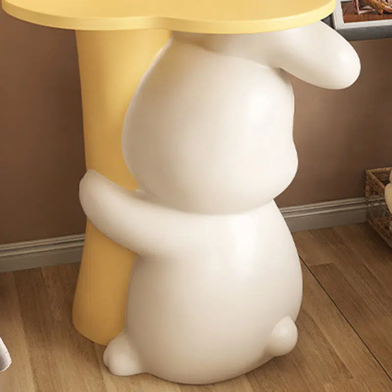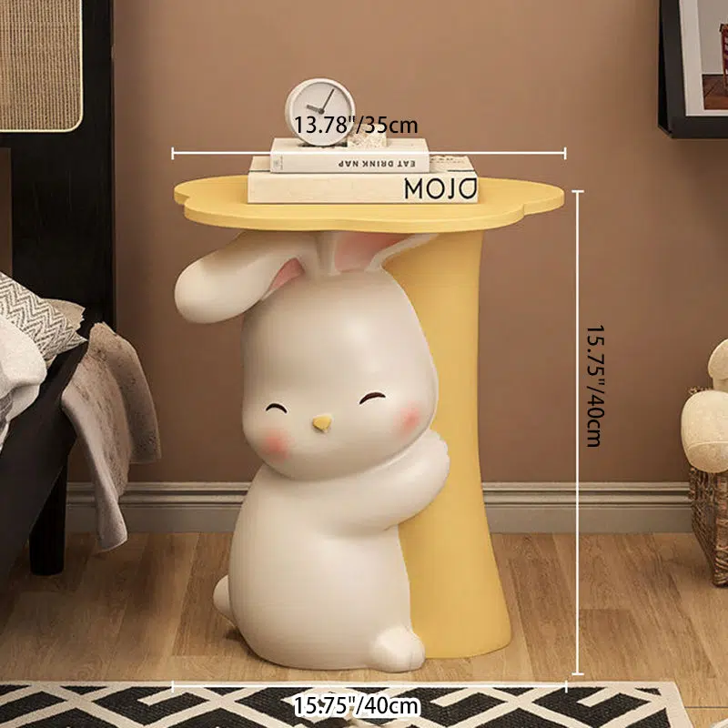 Contemporary Creative Kids Flower Rabbit Resin Wood End Table 1-Tray For Bedroom