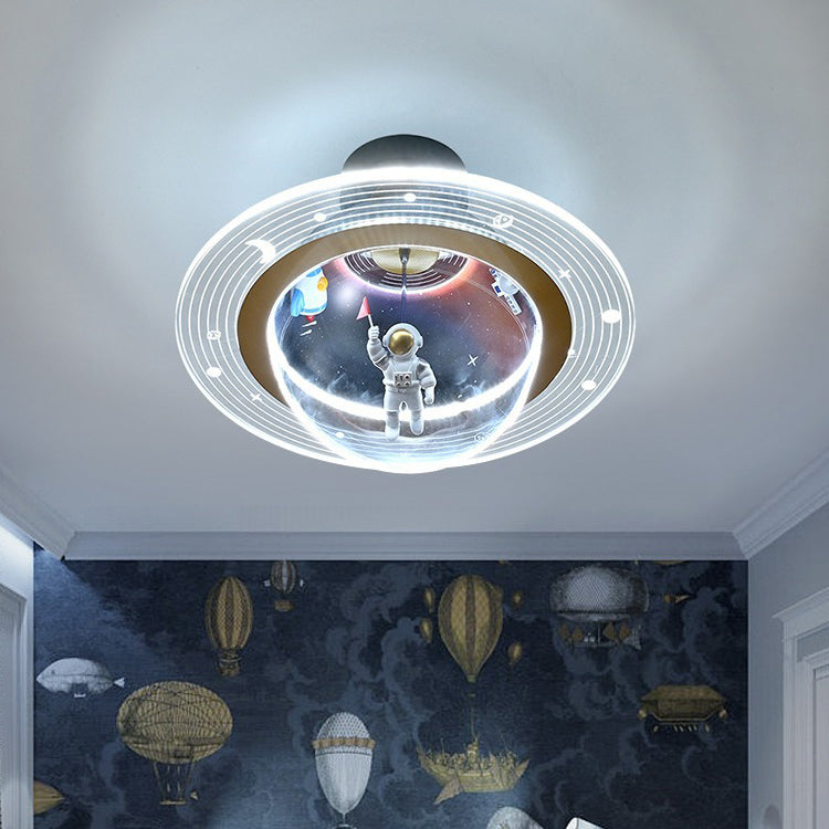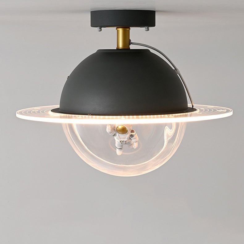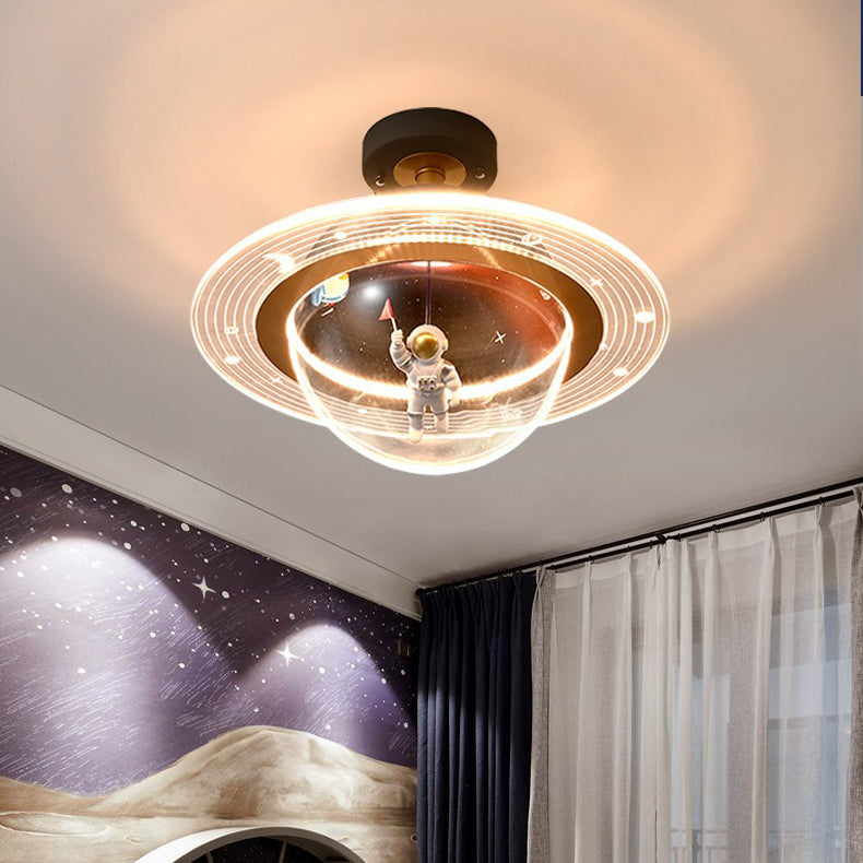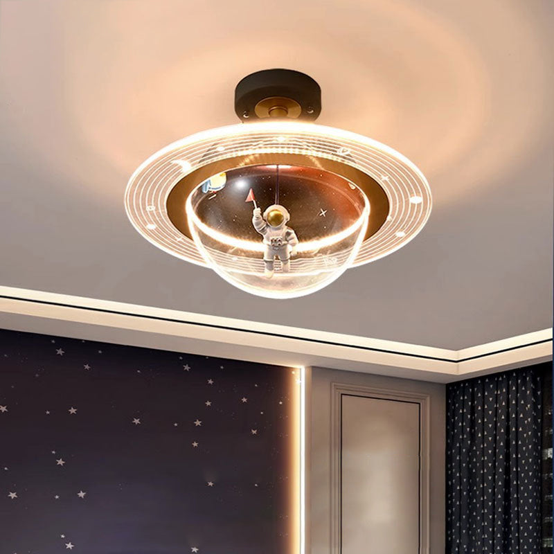 Contemporary Creative Kids Iron Resin & Acrylic Astronaut Globe LED Semi-Flush Mount Ceiling Light For Bedroom