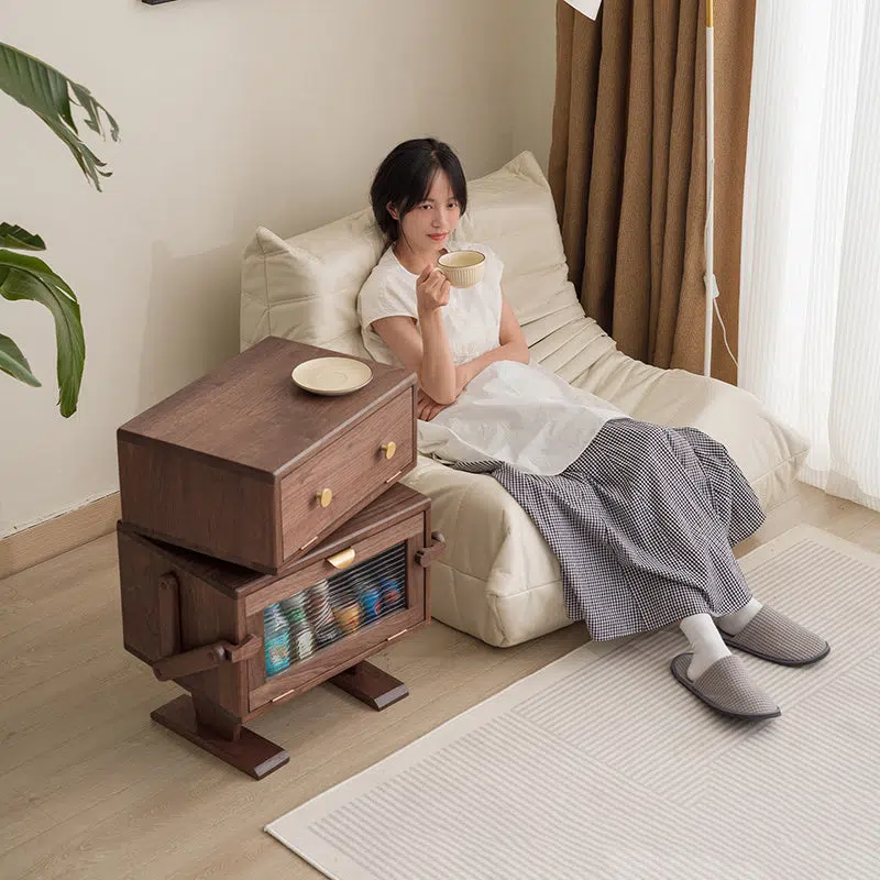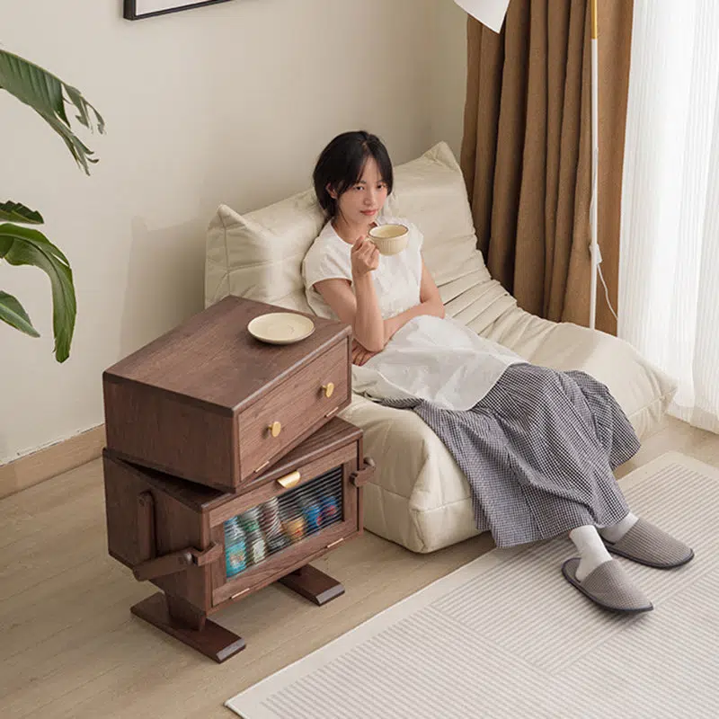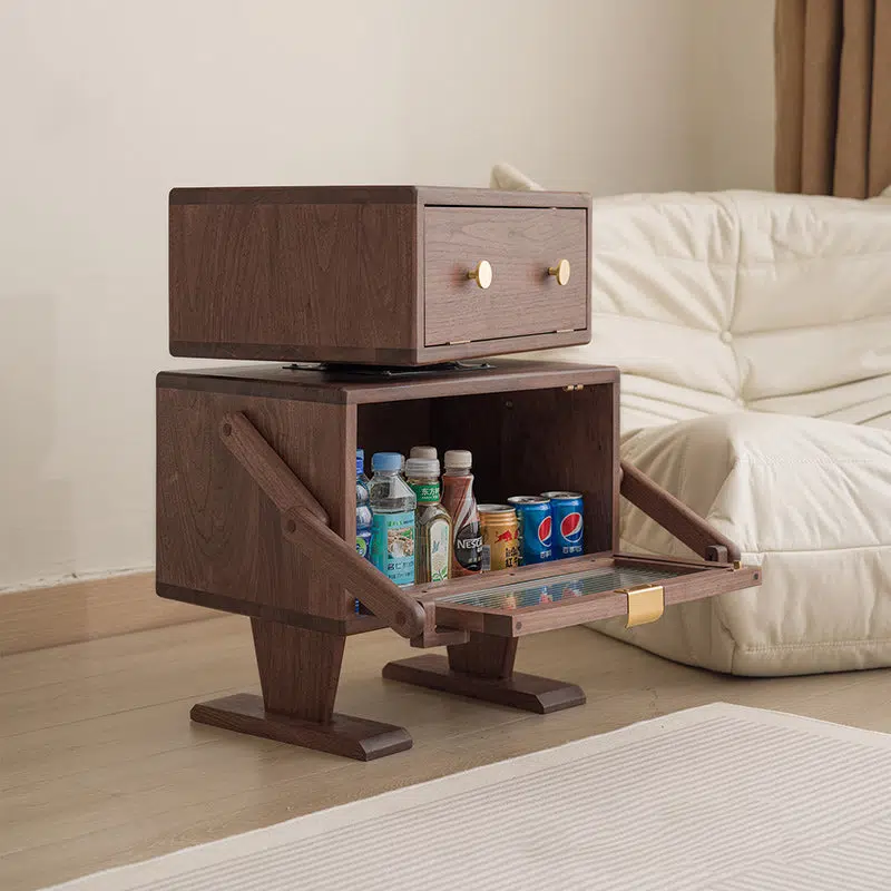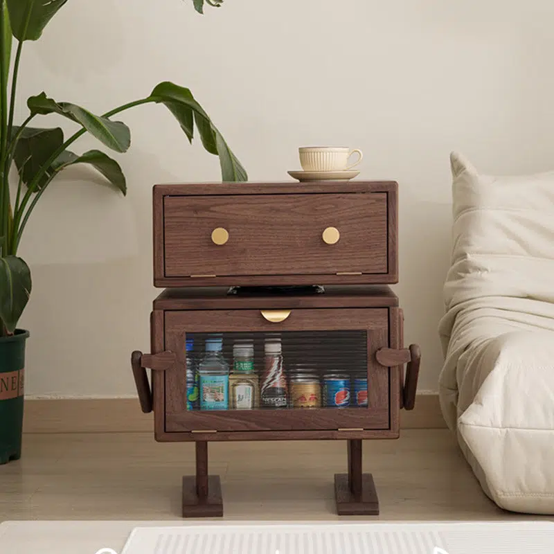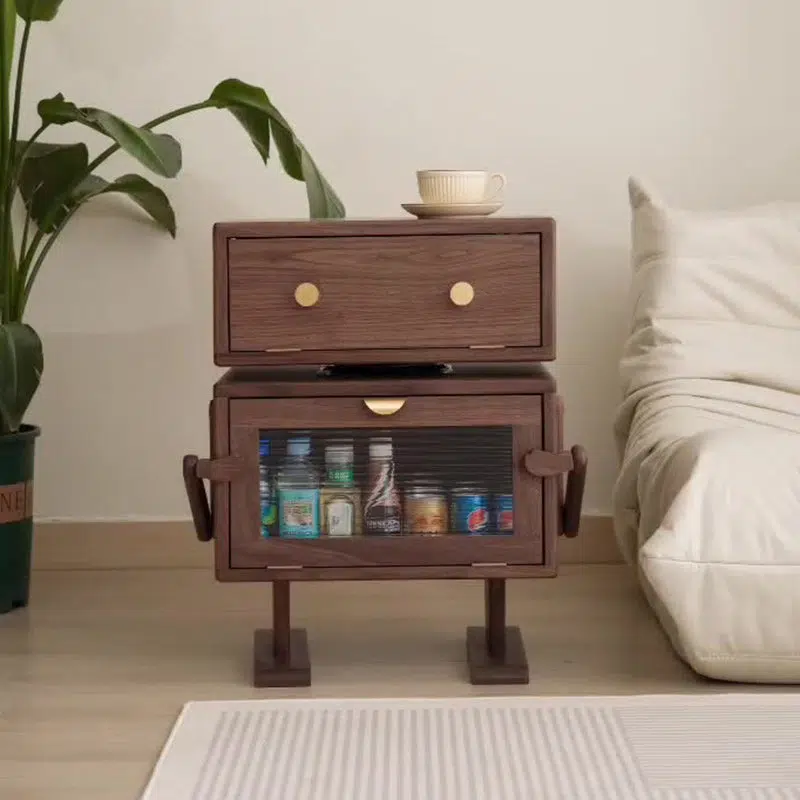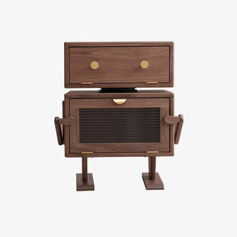 Contemporary Creative Kids Robot Rectangular Cubic Wood Nightstand Swivel 2-Cabinet For Bedroom