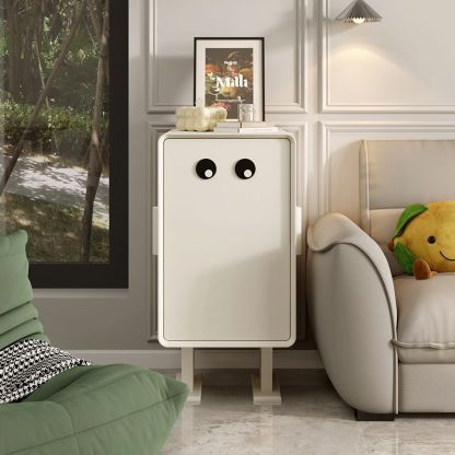 Contemporary Creative Kids Robot Square Tabletop Medium Fiberboard Nightstand 2-Cabinet For Bedroom