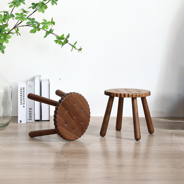 Contemporary Creative Kids Walnut Round Cookie Low Stool Backless For Entryway