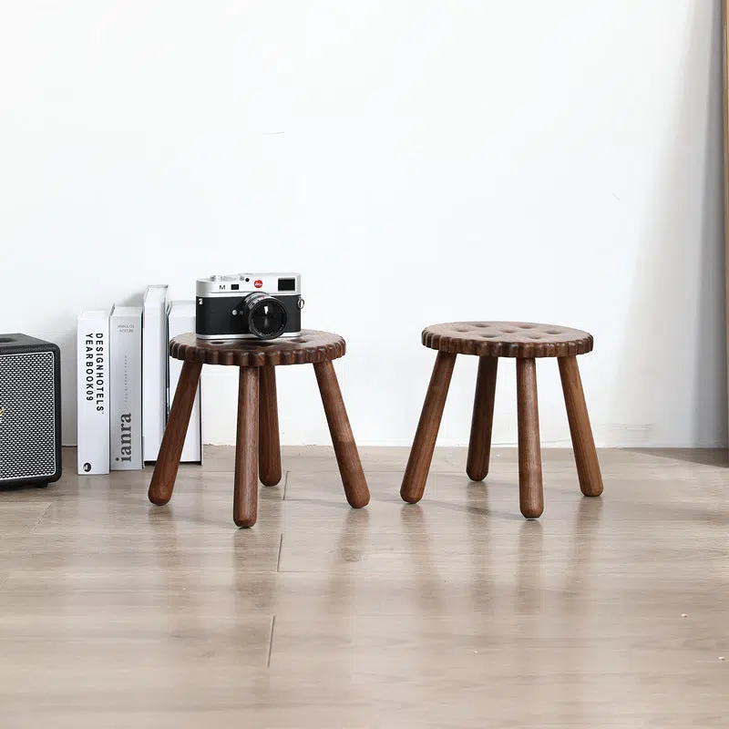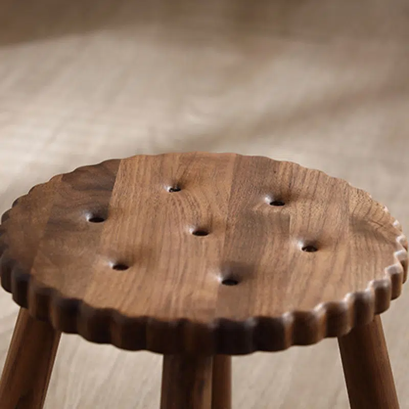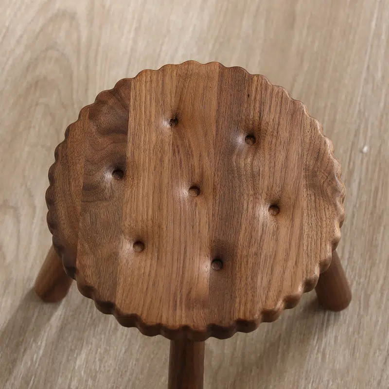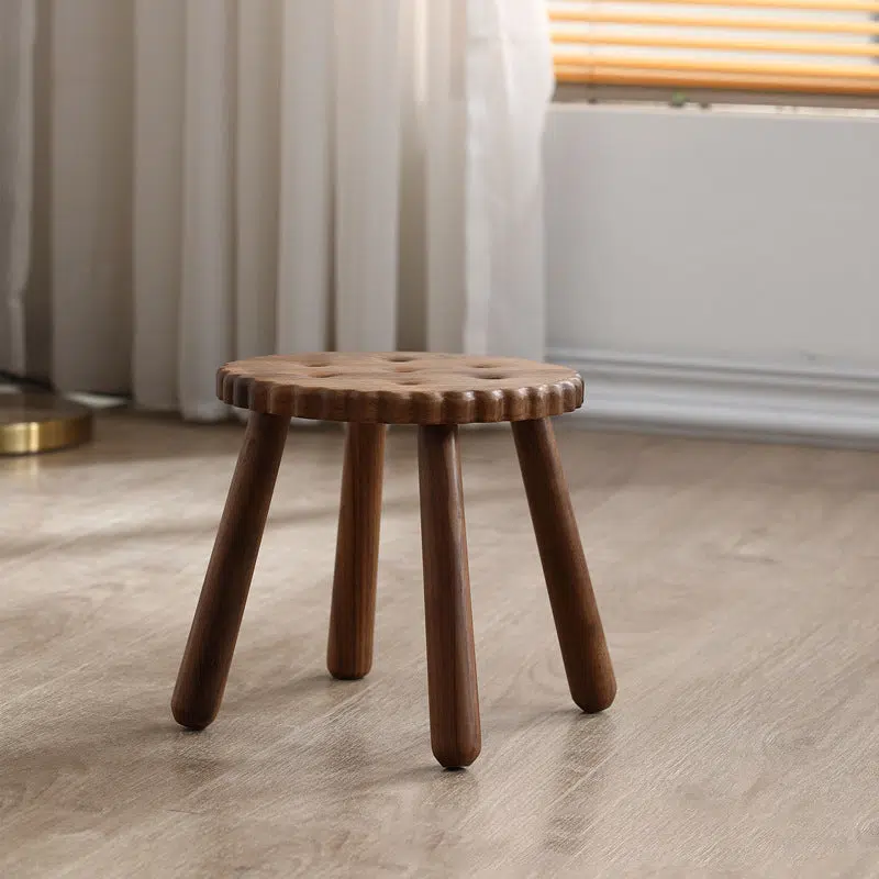 Contemporary Creative Kids Walnut Round Cookie Low Stool Backless For Entryway