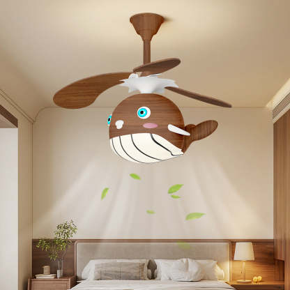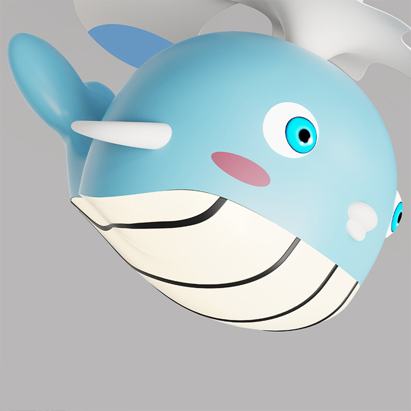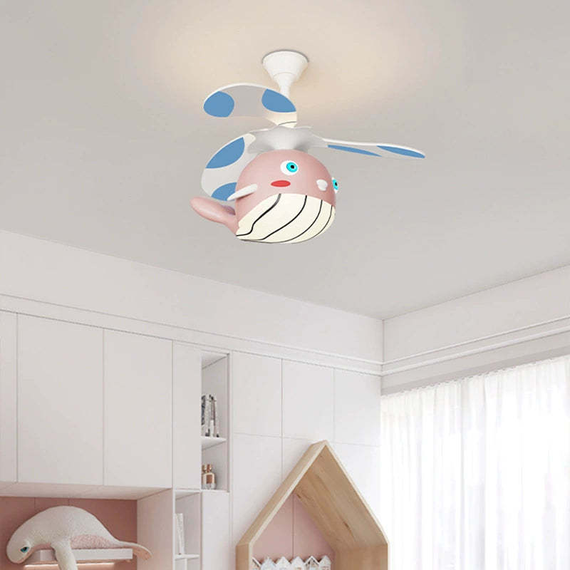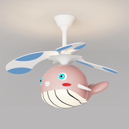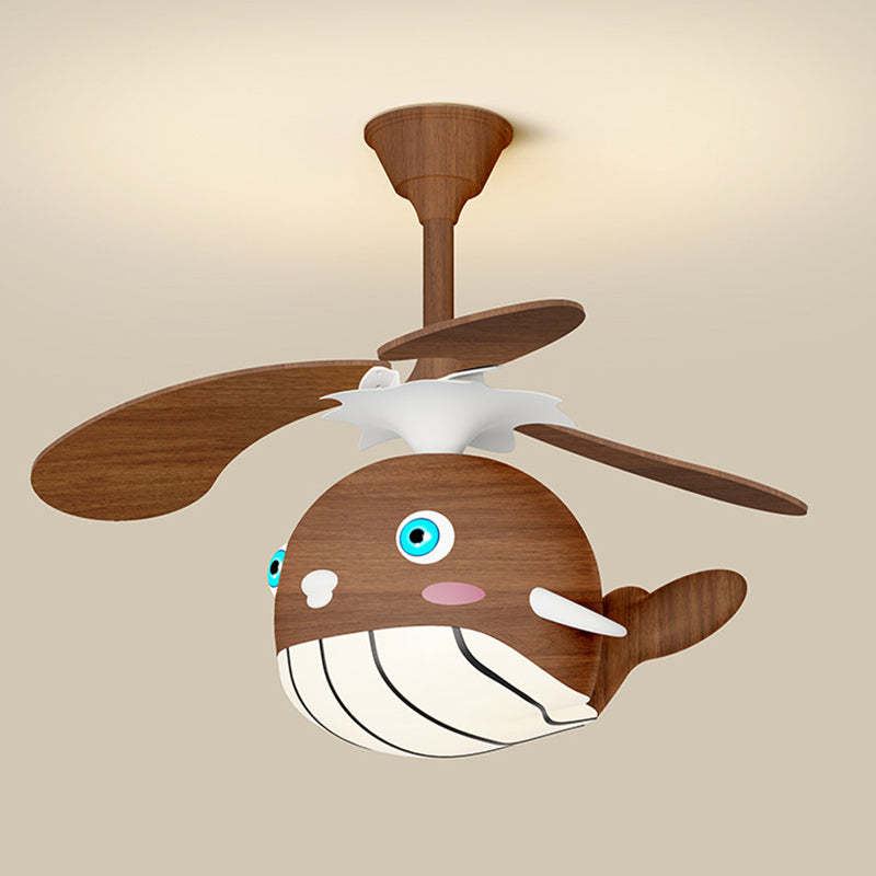 Contemporary Creative Kids Whale Dolphin Iron Wood ABS Acrylic LED Downrods Ceiling Fan Light For Bedroom
