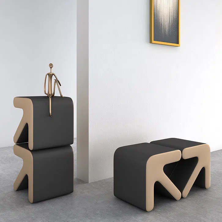 Contemporary Creative Leather & Wood Arrow-Shaped Stackable Footstool For Living Room & Entryway