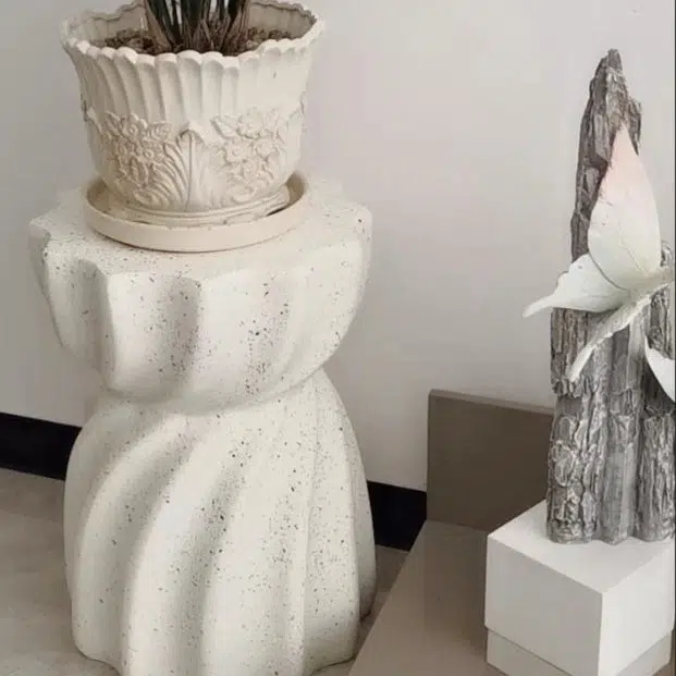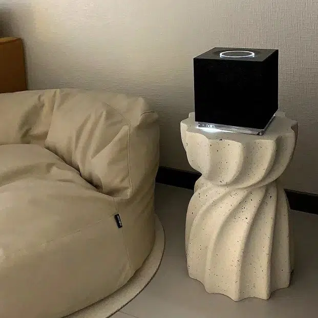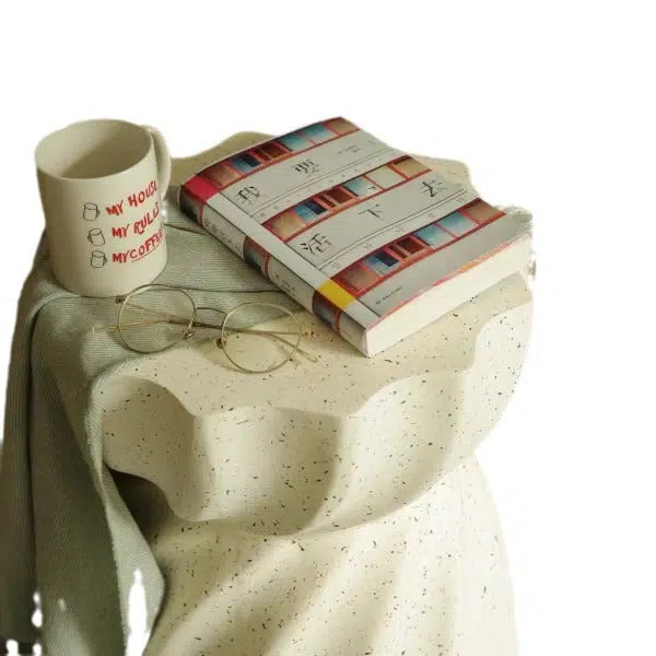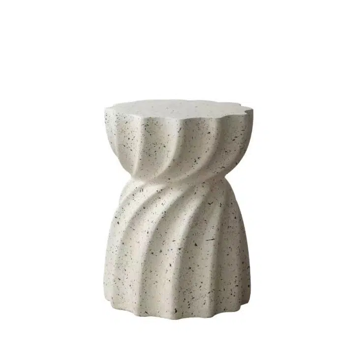 Contemporary Creative Lotus Shape Distressed Stone End Table 1-Tier For Living Room