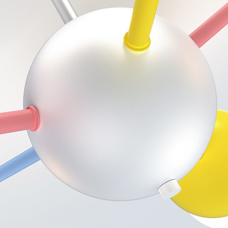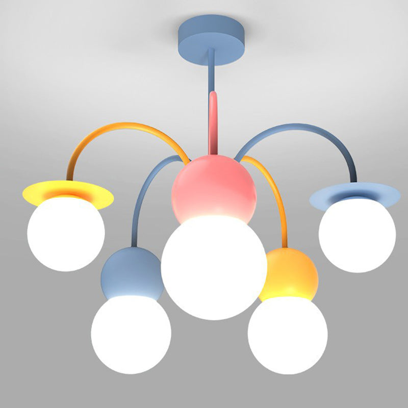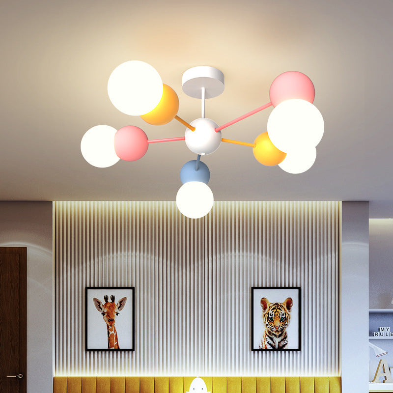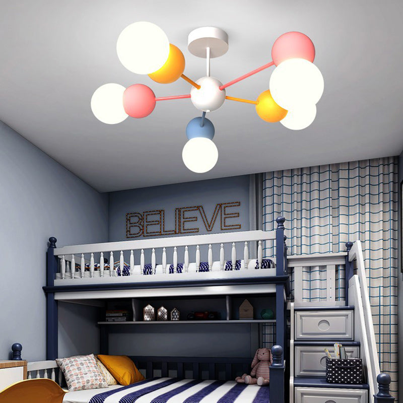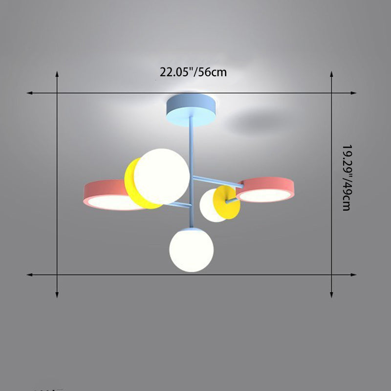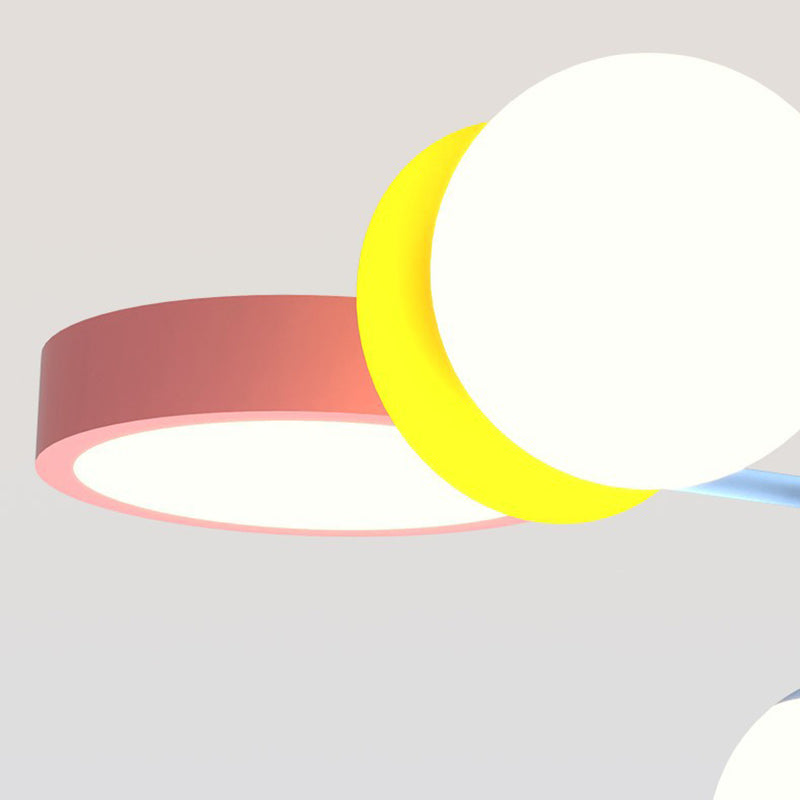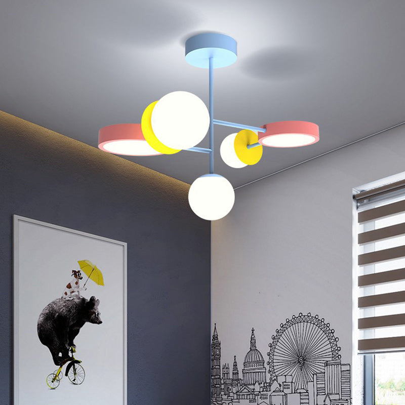 Contemporary Creative Macaron Kids Round Orb Iron Glass Aluminum LED Semi-Flush Mount Ceiling Light For Bedroom