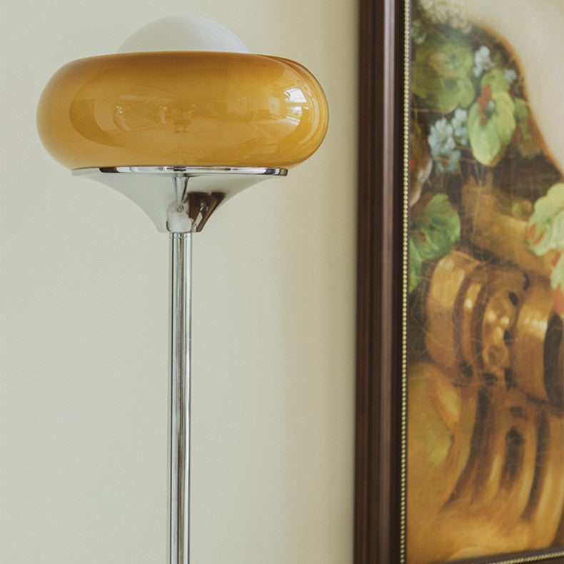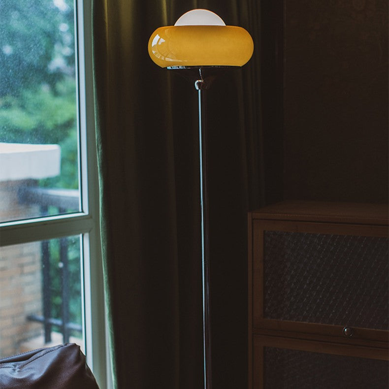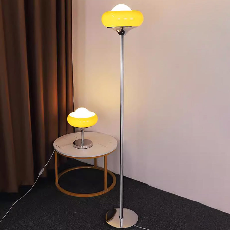 Contemporary Creative Metal & Glass Egg Tart-Shape 1-Light Standing Floor Lamp For Bedroom & Living Room