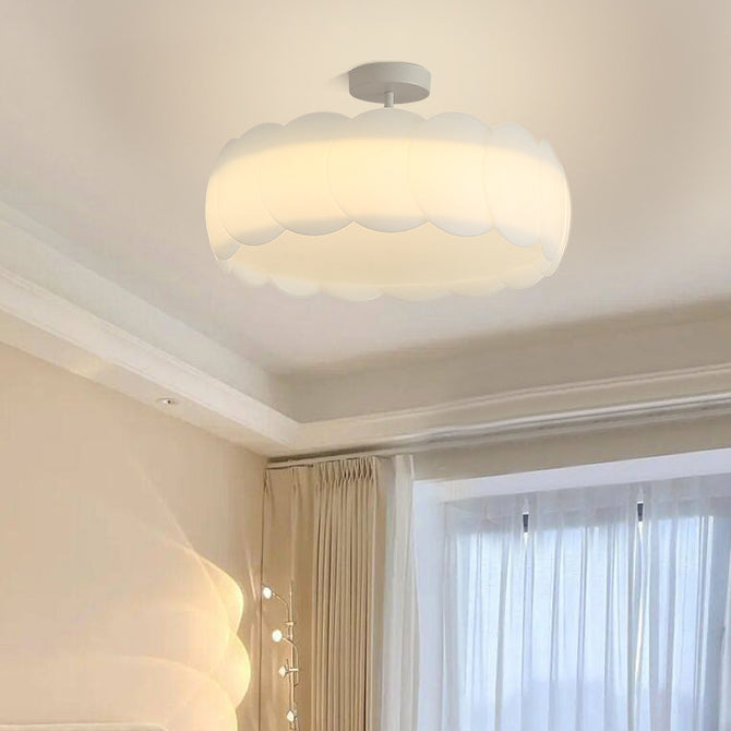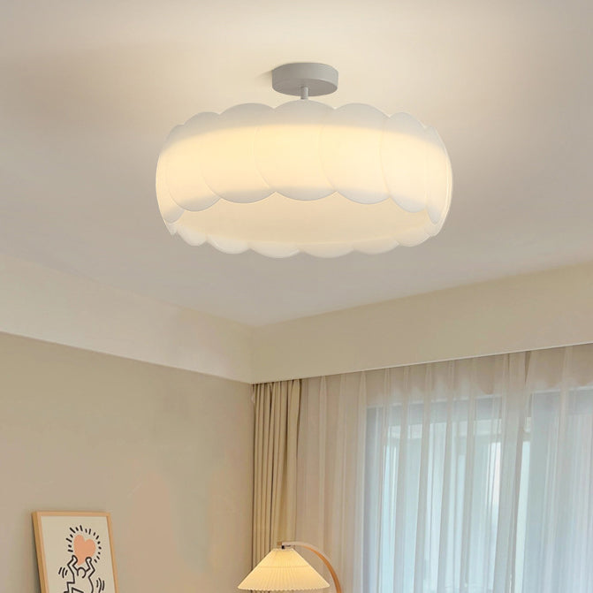 Contemporary Creative Metal PE Round Wave LED Semi-Flush Mount Ceiling Light For Bedroom & Living Room
