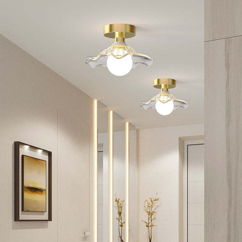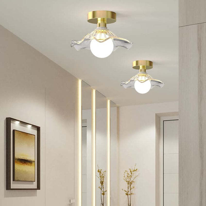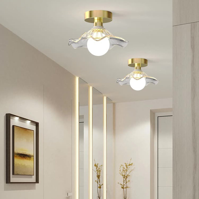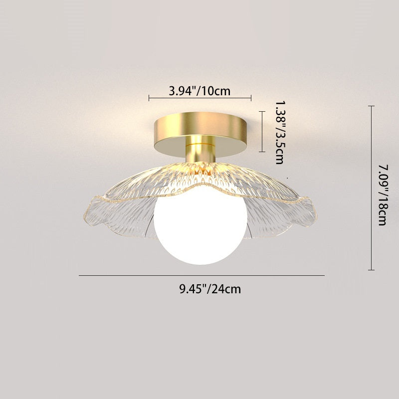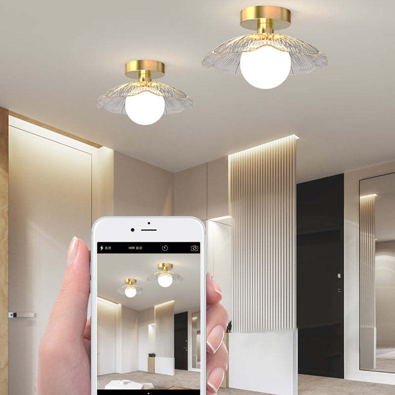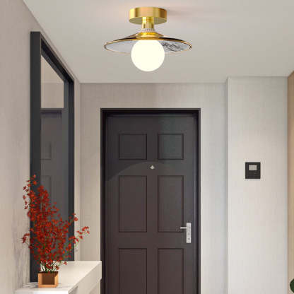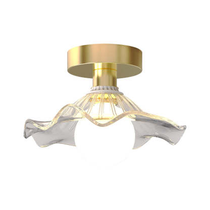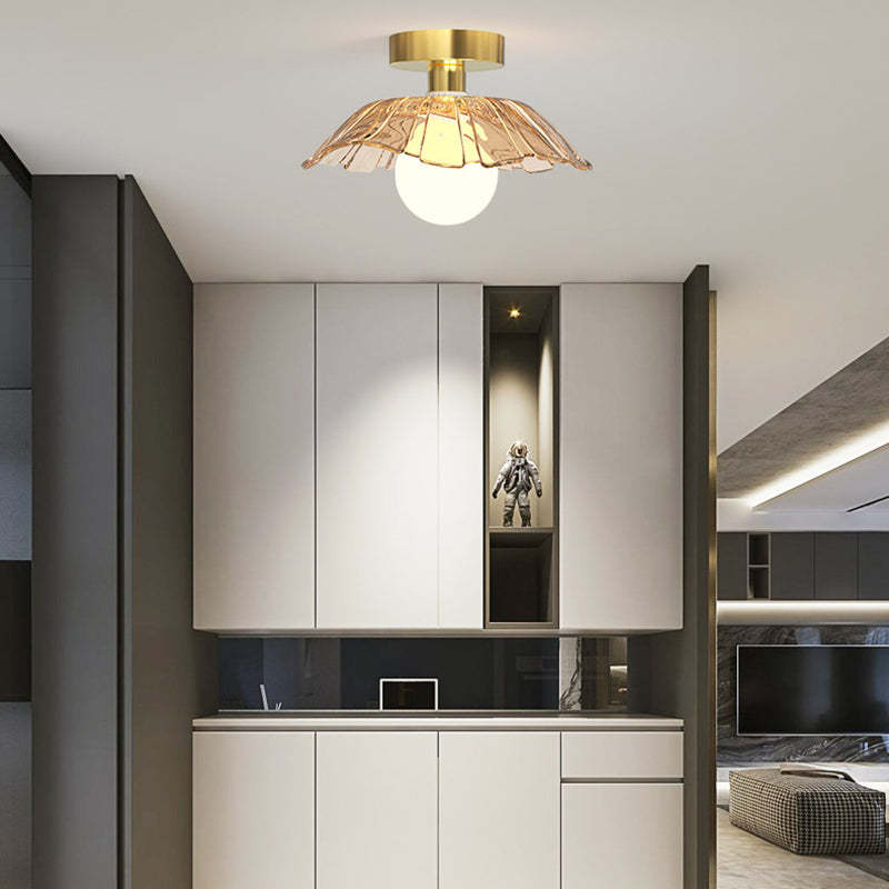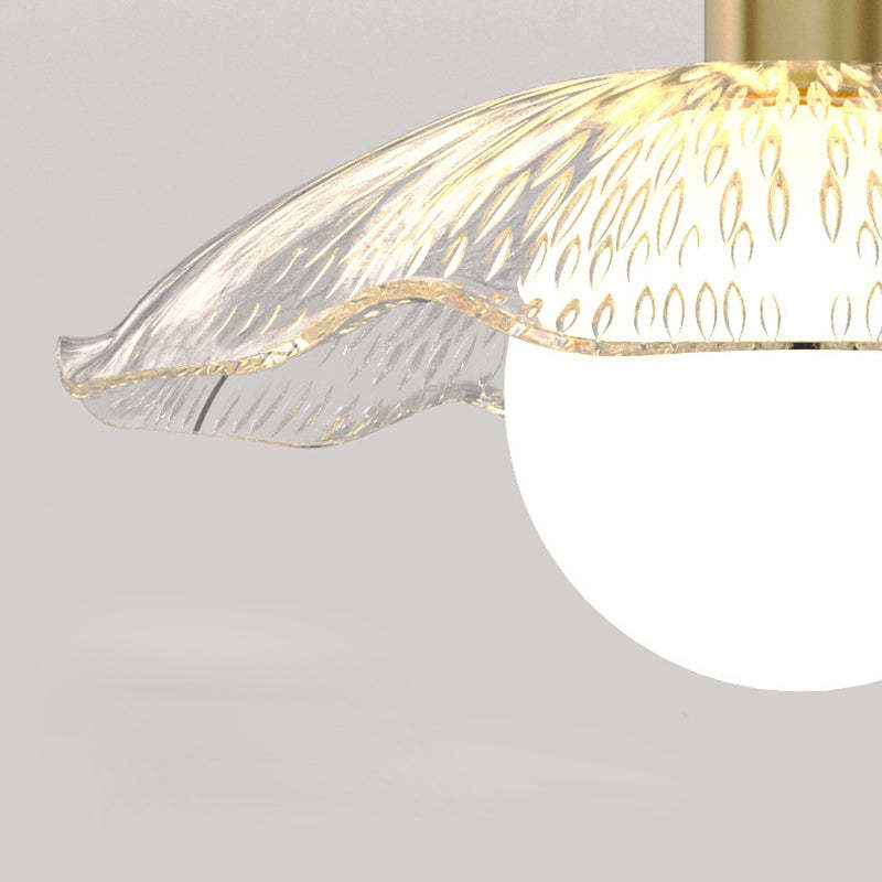 Contemporary Creative Orb Umbrella Round Glass Iron 1-Light Semi-Flush Mount Ceiling Light For Living Room