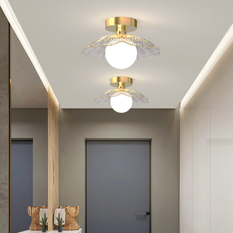 Contemporary Creative Orb Umbrella Round Glass Iron 1-Light Semi-Flush Mount Ceiling Light For Living Room