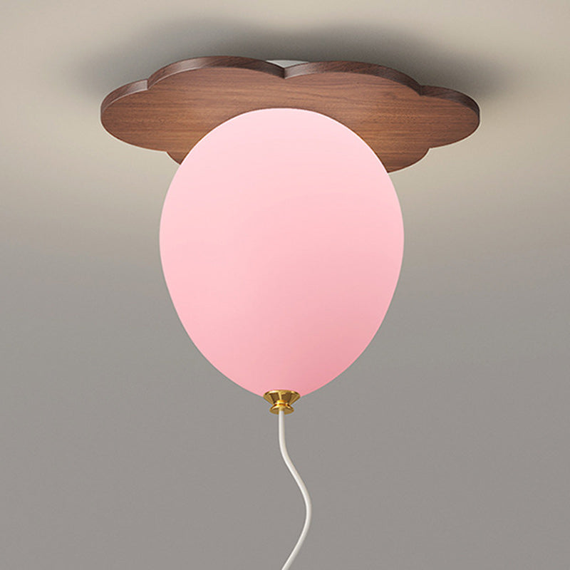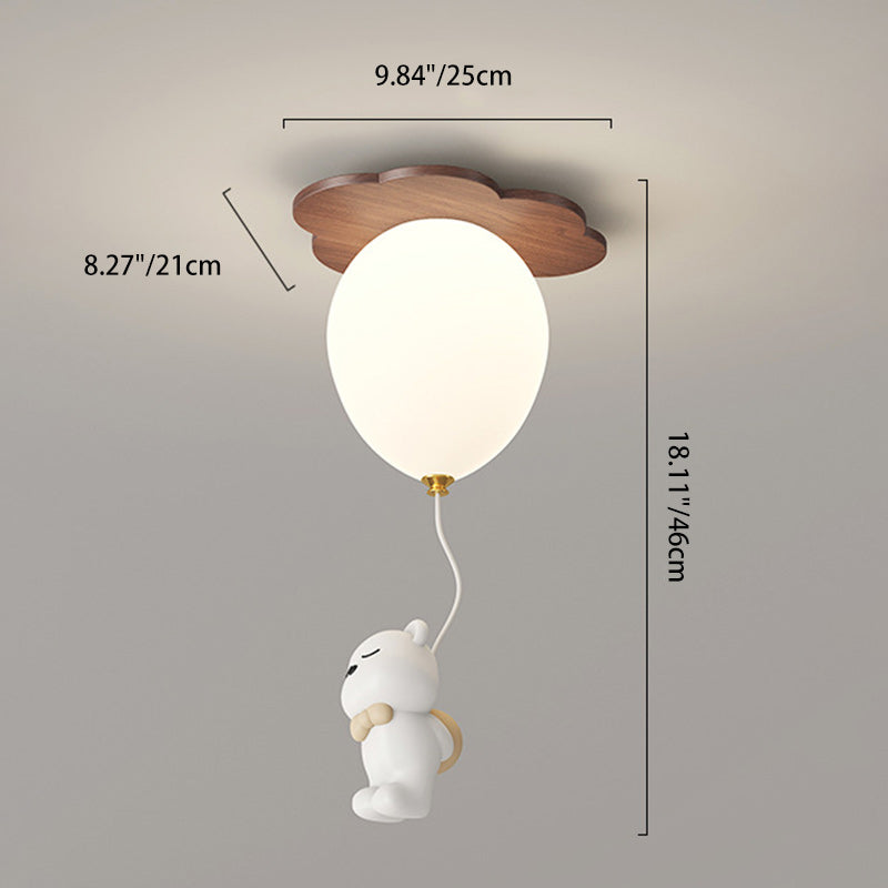 Contemporary Creative PE Rubberwood Balloon Animal Flower LED Semi-Flush Mount Ceiling Light For Bedroom & Living Room