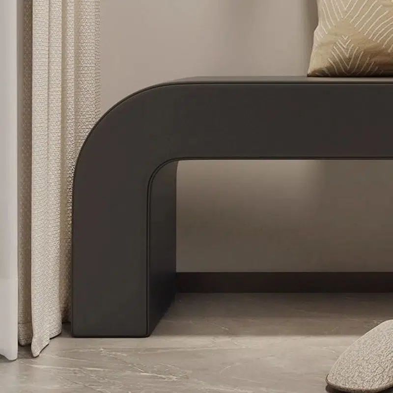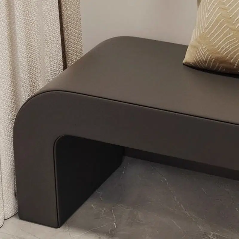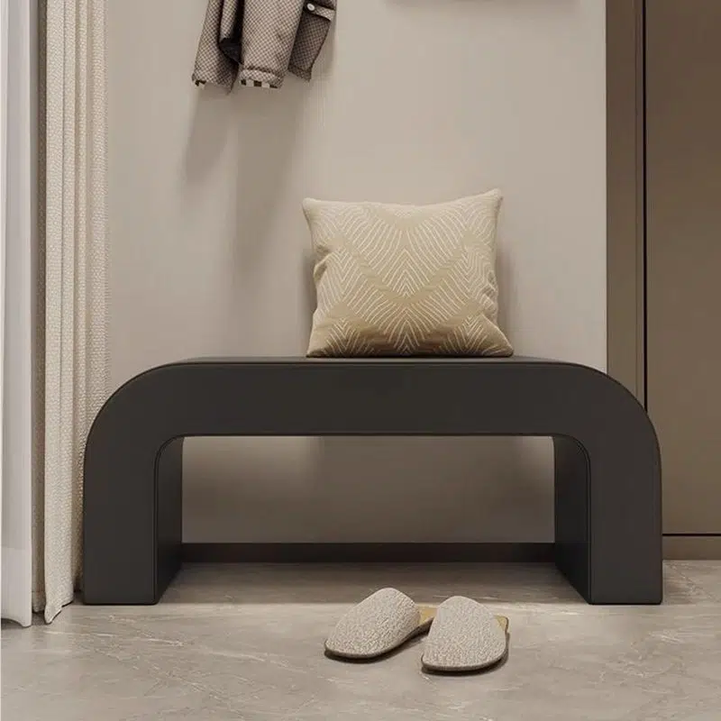 This contemporary shoe bench features a soft PU leather seat with a rounded rectangular design. available in black. ivory. and gray. Built with a sturdy wood base. it offers one spacious tier and a wide cushioned top??perfect for comfortable shoe changing in entryways or living rooms.