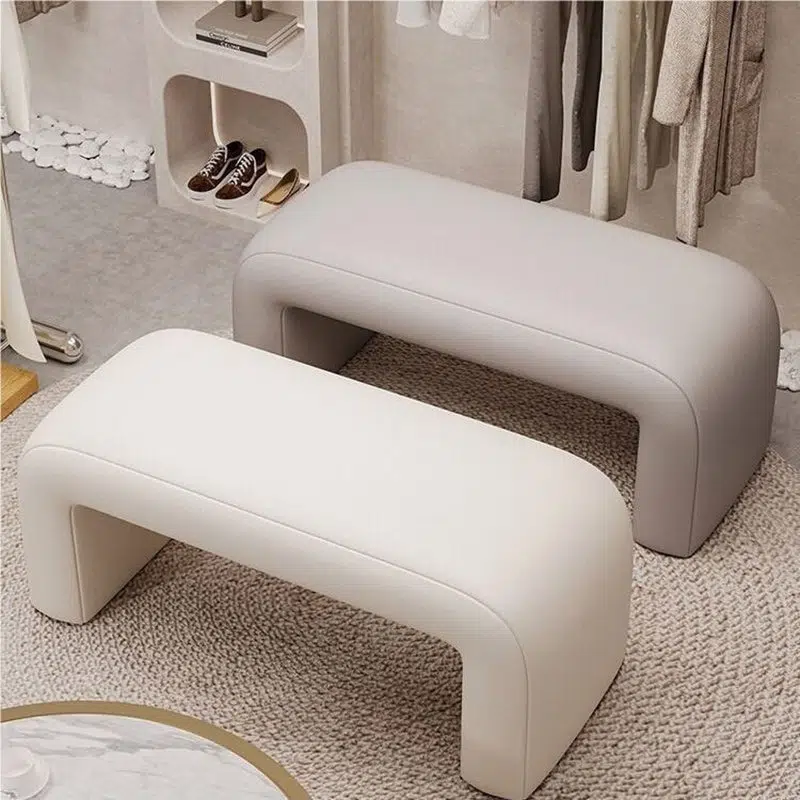 Contemporary Creative PU Leather Wood Rounded Rectangular Footstool Bench For Living Room
