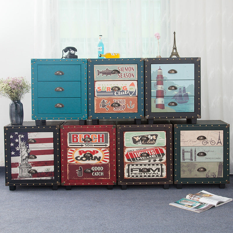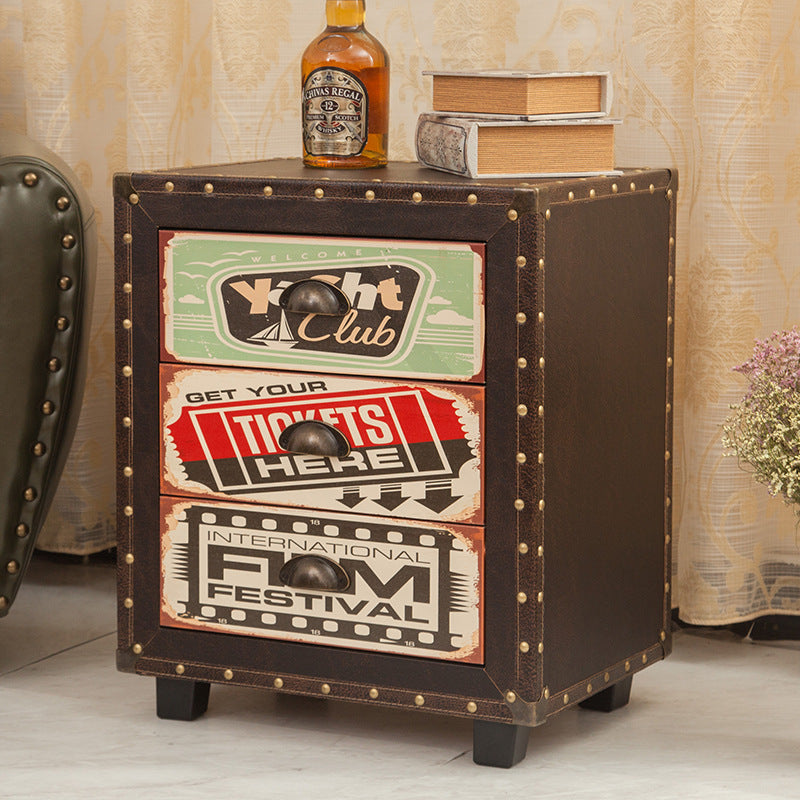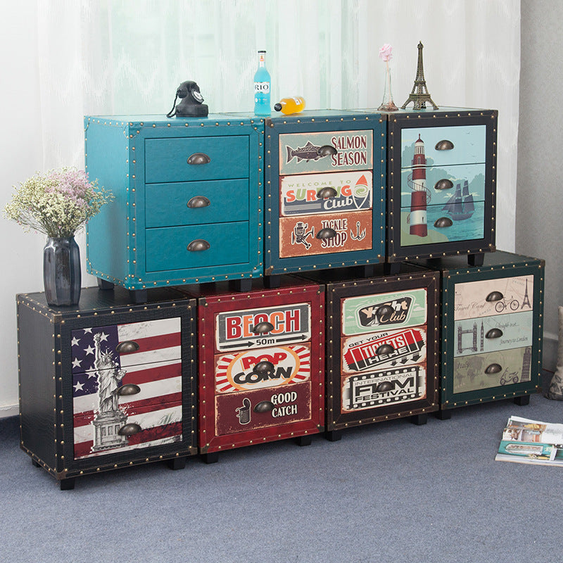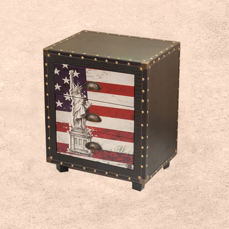 Contemporary Creative Rectangular Cube Density Board PU Nightstand 3 – Drawer For Living Room