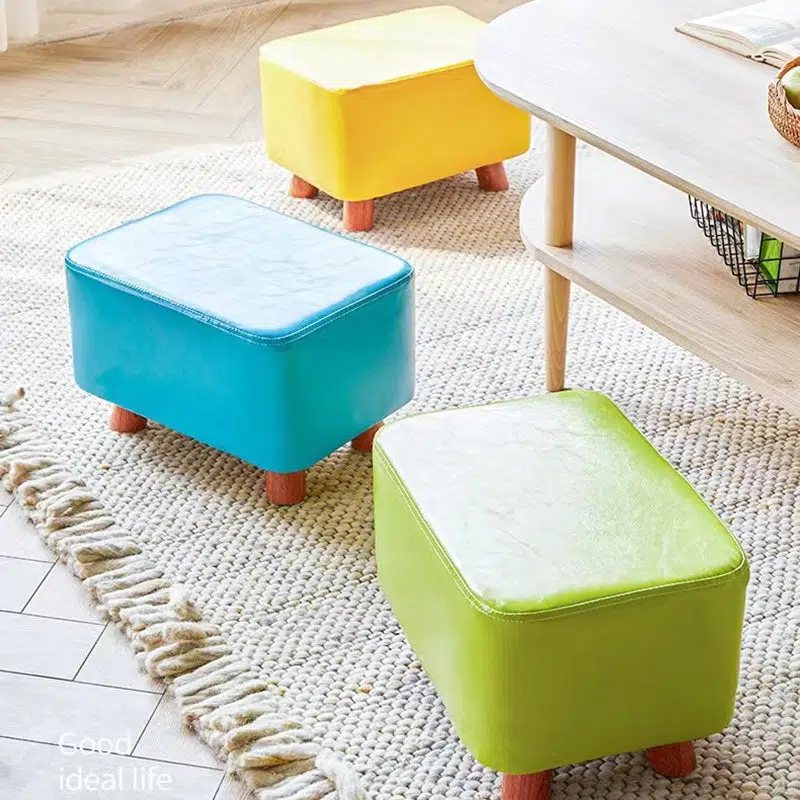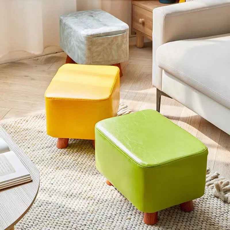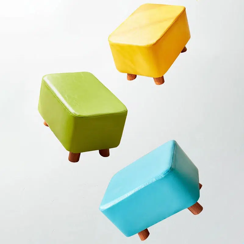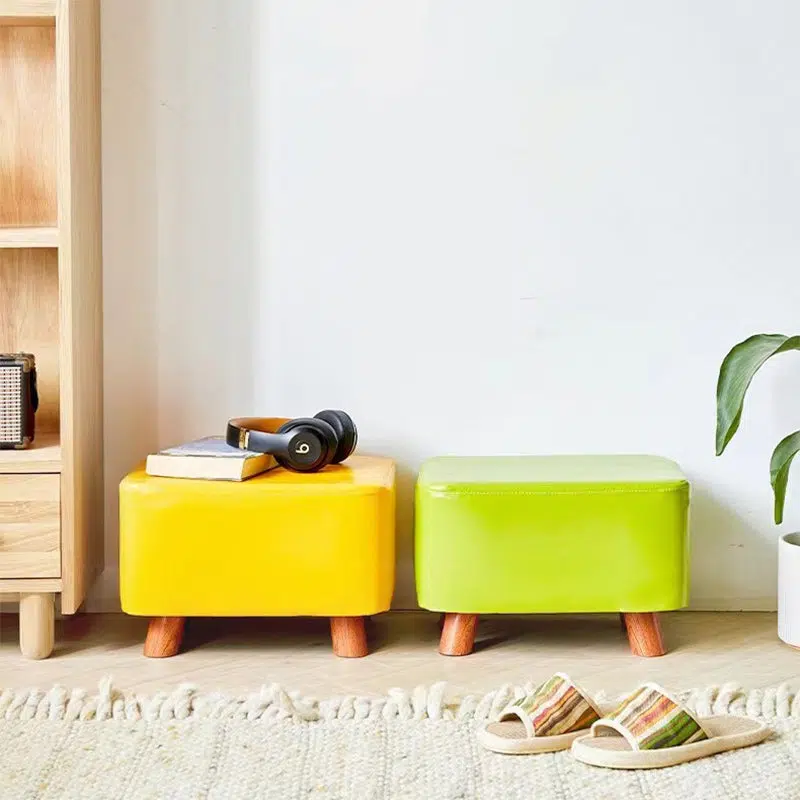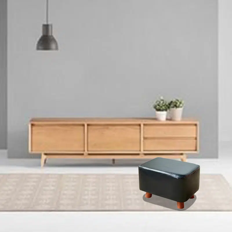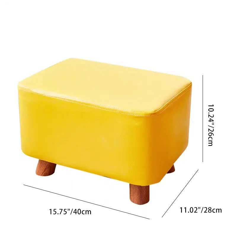 Contemporary Creative Rectangular Leather Wood Footstool Backless Armless For Living Room