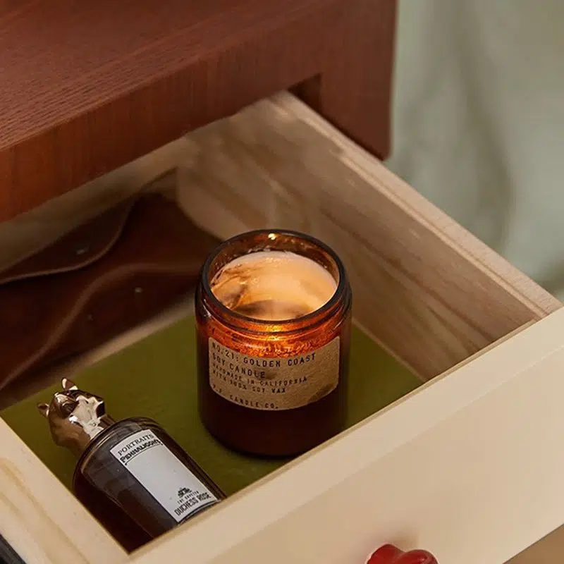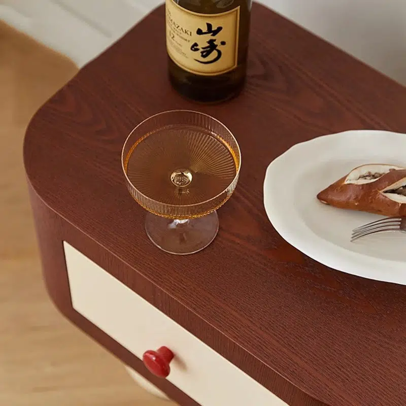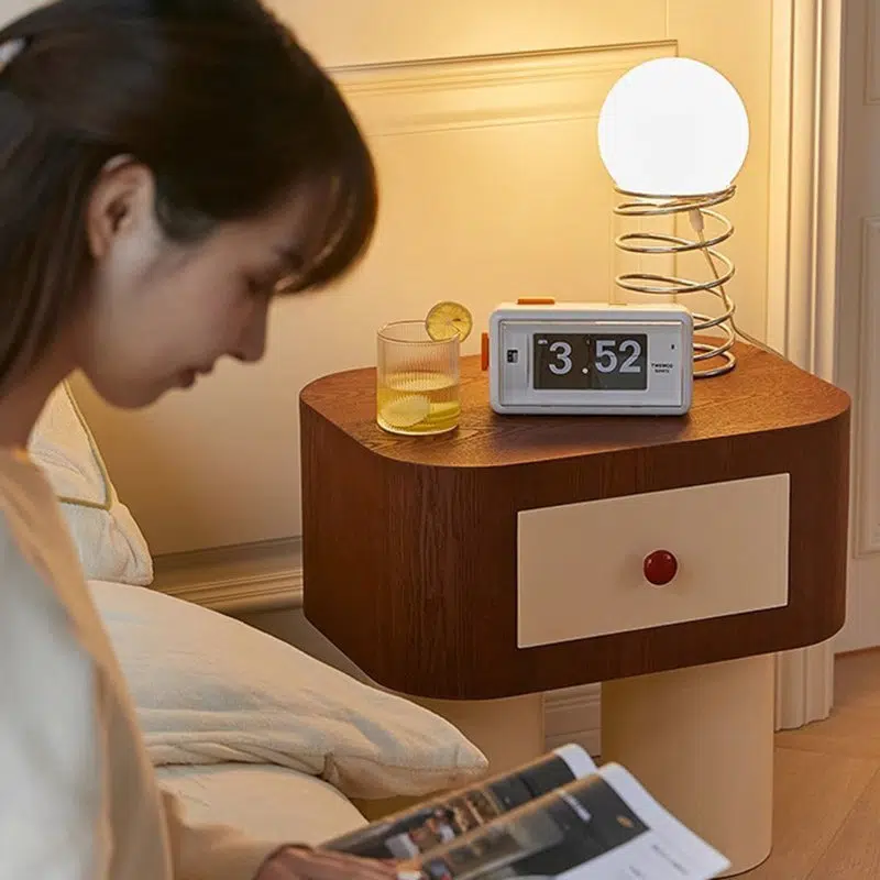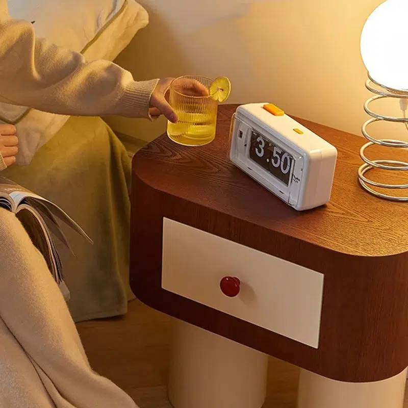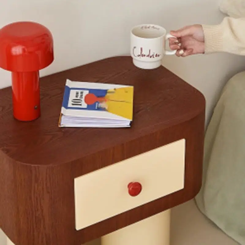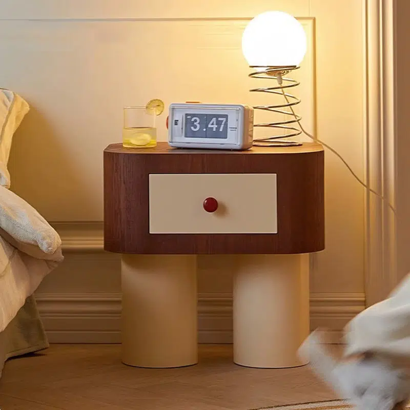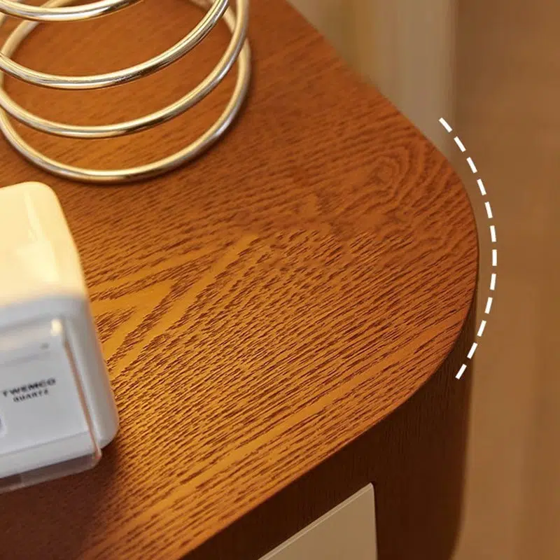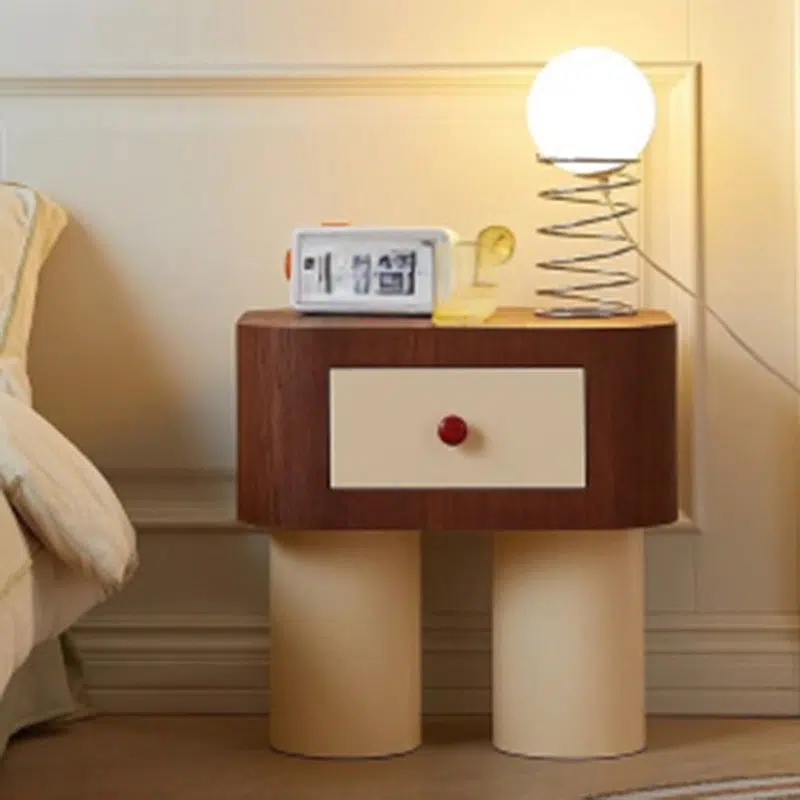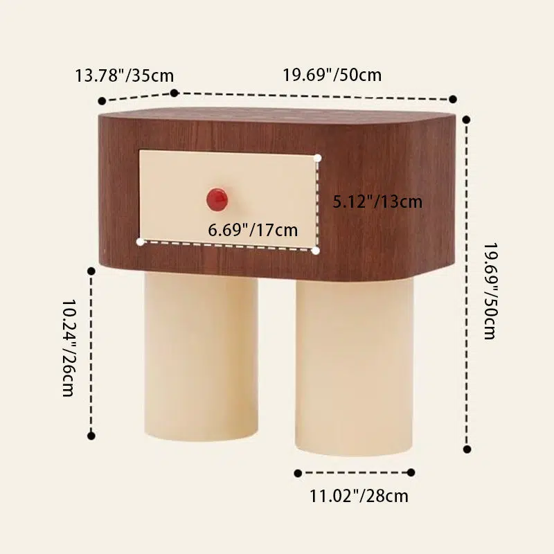 Contemporary Creative Rectangular Round Corner Cylinder Base Solid Wood Density Plank Nightstand For Bedroom