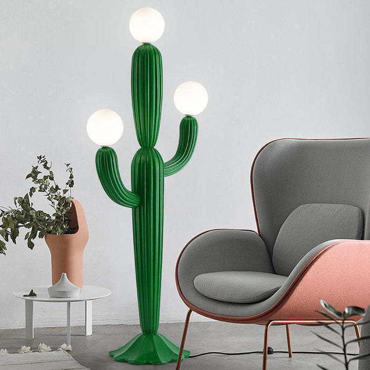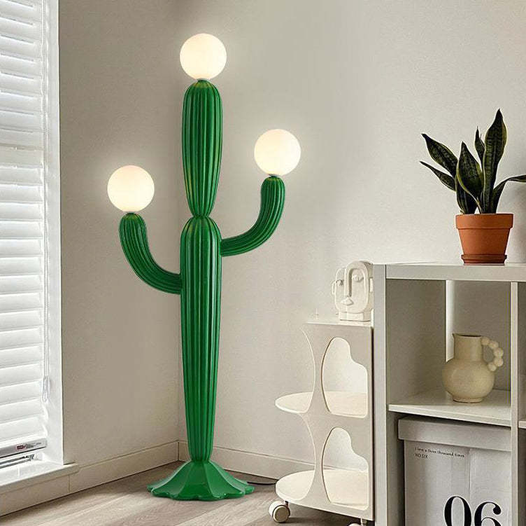 Brighten up your home with this cactus-shaped standing floor lamp. featuring a playful green design with three glass lights and a resin body. Ideal for bedrooms or living rooms. this creative floor lamp brings cozy ambiance and trendy decor into any modern space.